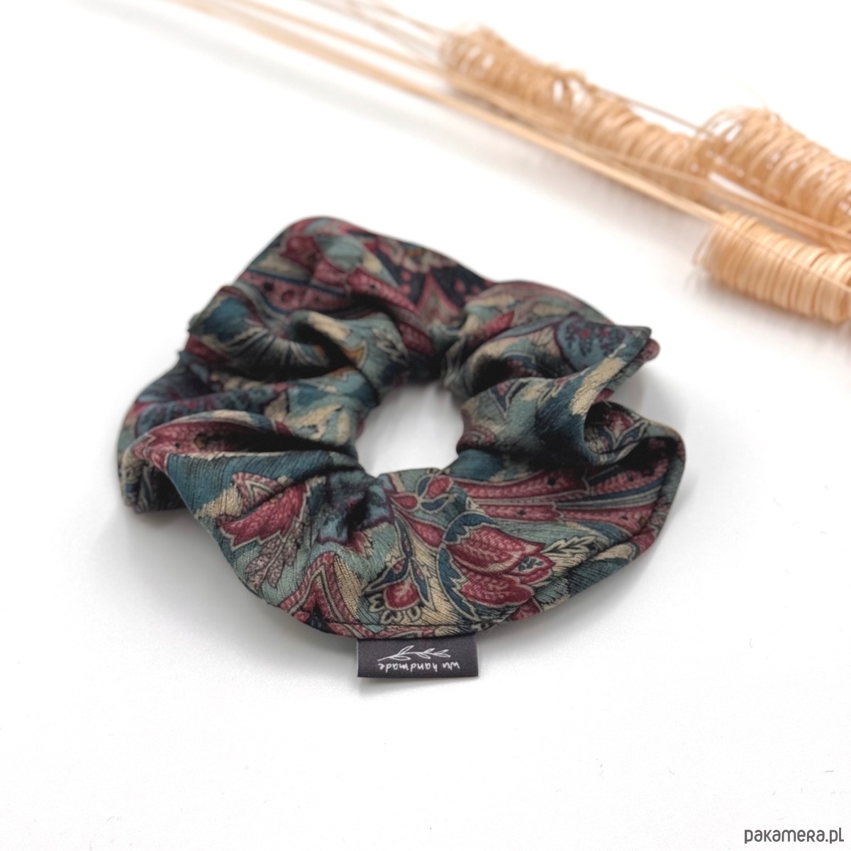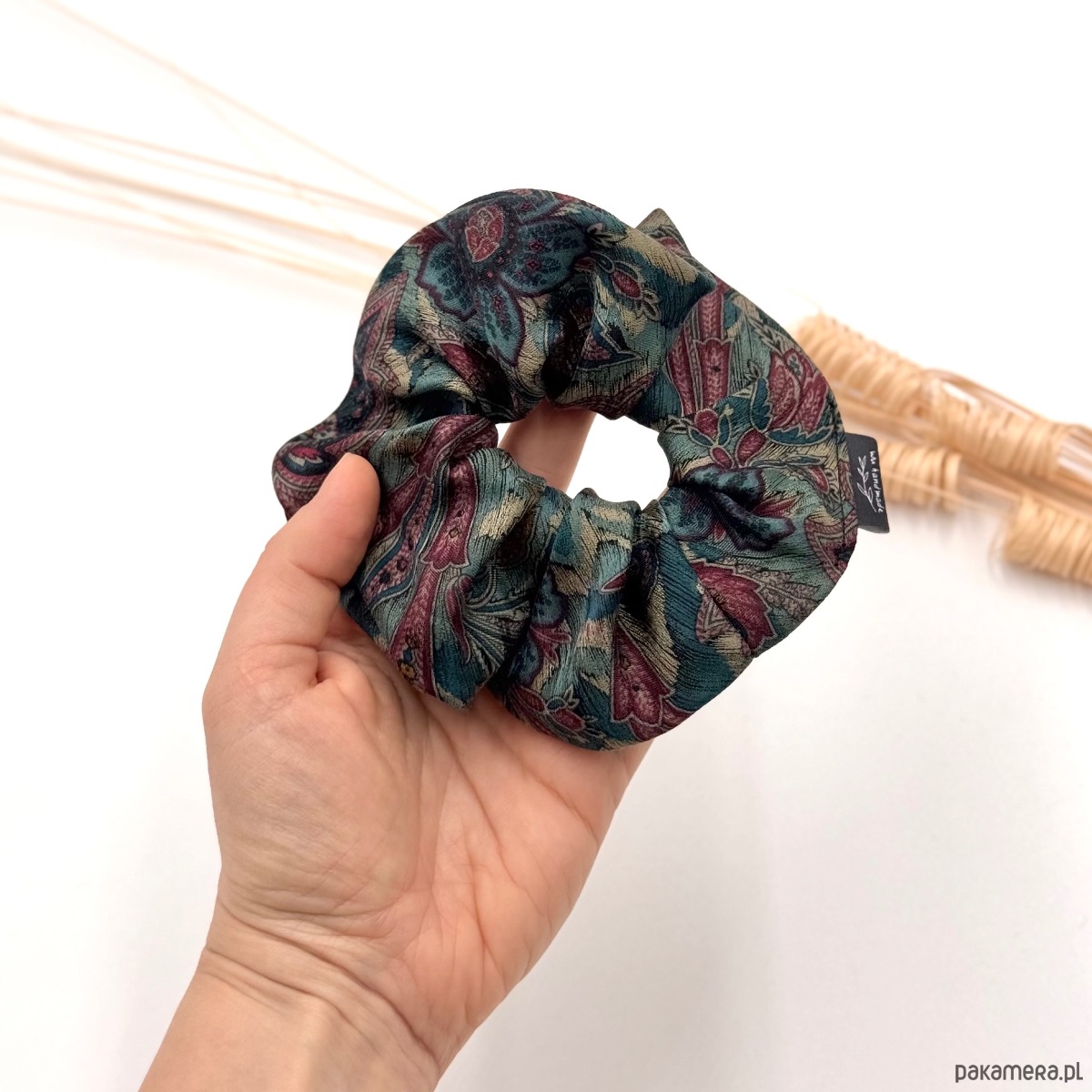 Scrunchie/frotka uszyta z jedwabnego krawata z drugiej ręki.