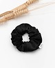 Klasyczna scrunchie uszyta z grubej satyny bawełnianej w kolorze czarnym.