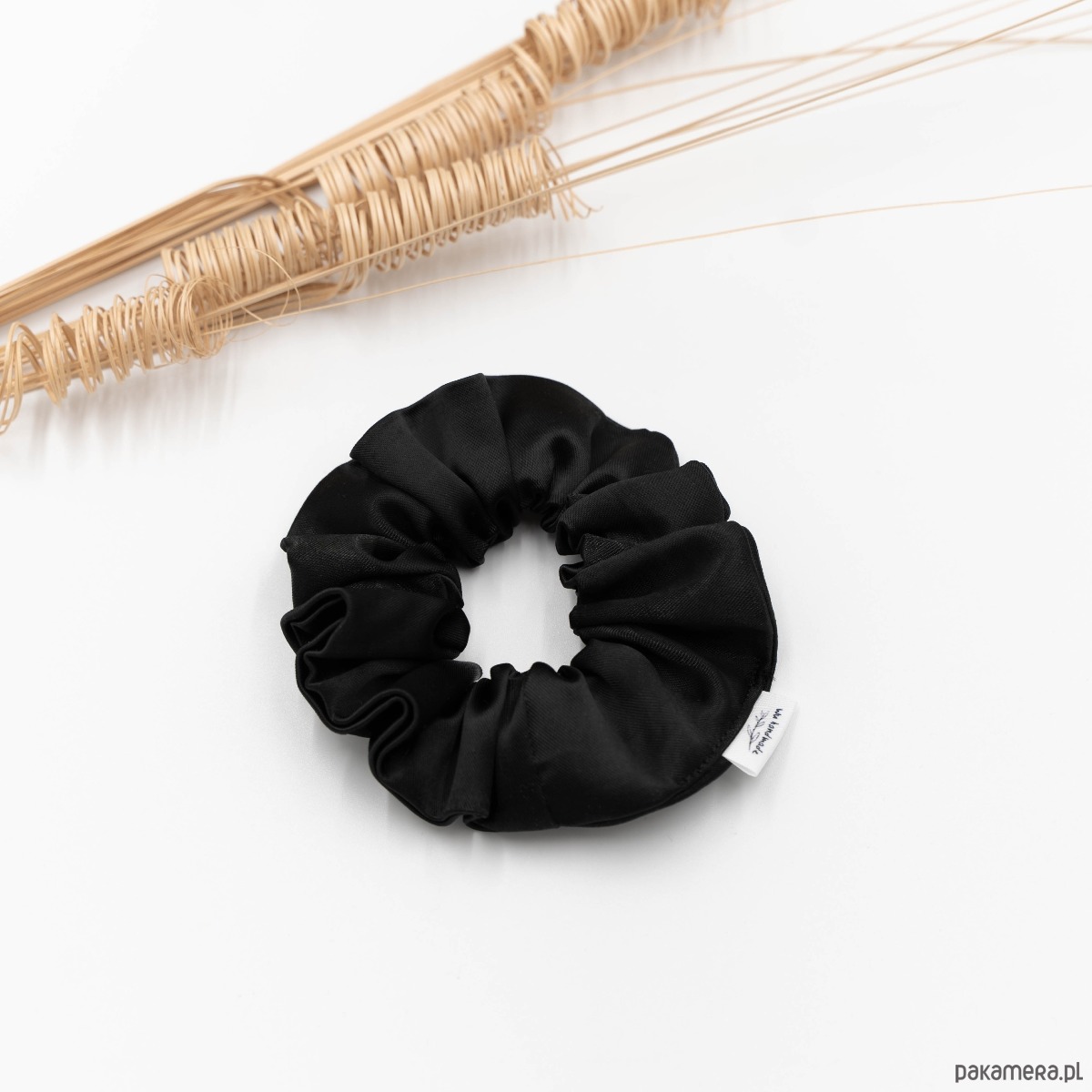 Klasyczna scrunchie uszyta z grubej satyny bawełnianej w kolorze czarnym.