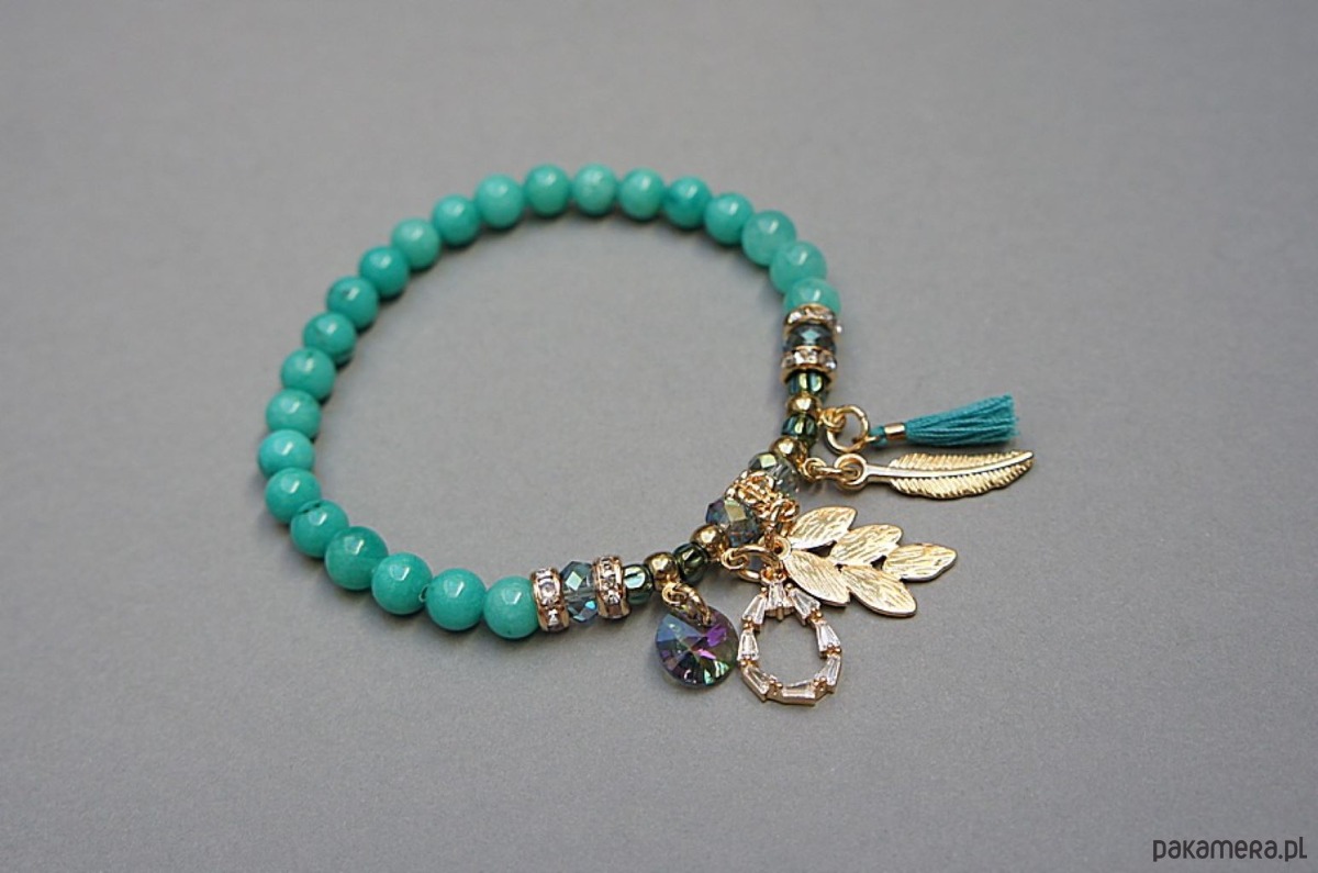 Bransoletka z kolekcji "Gypsy"cechującej się wykorzystaniem w jednej bransoletce - mixu minerałów, kryształków, elementów ozdobnych, kryształków Swarovskiego, cyrkonii, przywieszek etc.. Charakterystyczny układ kamieni z większą ilością zawieszek i mocno rozbudowanym przodem stworzyłyśmy w 2018r. Model jest w sam sobie na tyle strojny, że nie wymaga uzupełnienia go dodatkowymi akcentami. KOLEKCJA AUTORSKA
