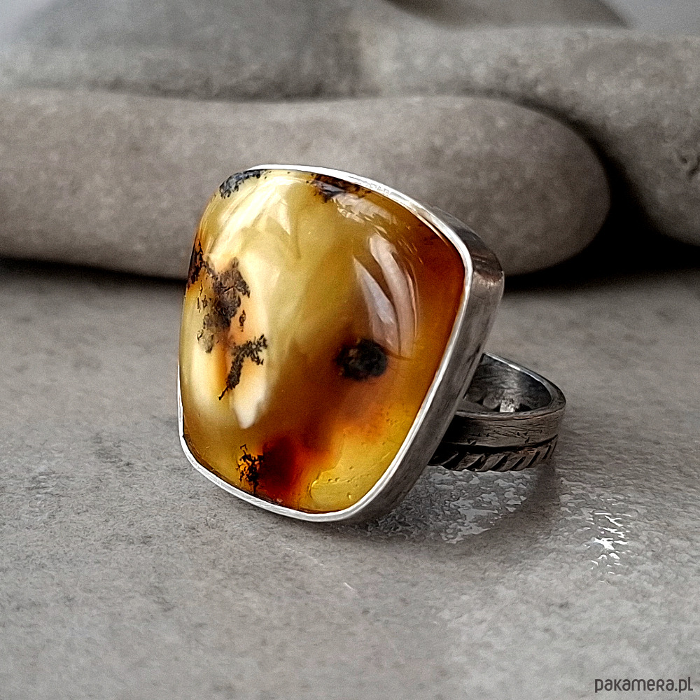 Seasalt III srebrny pierścionek z bursztynem bałtyckim