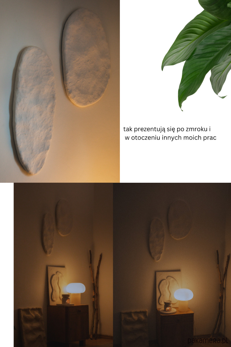Jest to zestaw dwóch organicznych płaskorzeźb, który idealnie sprawdzi się we wnętrzach w stylu wabi sabi, japandi, minimalistycznych i boho, będzie pięknym uzupełnieniem przestrzeni do medytacji, ćwiczeń jogi oraz odpoczynku.