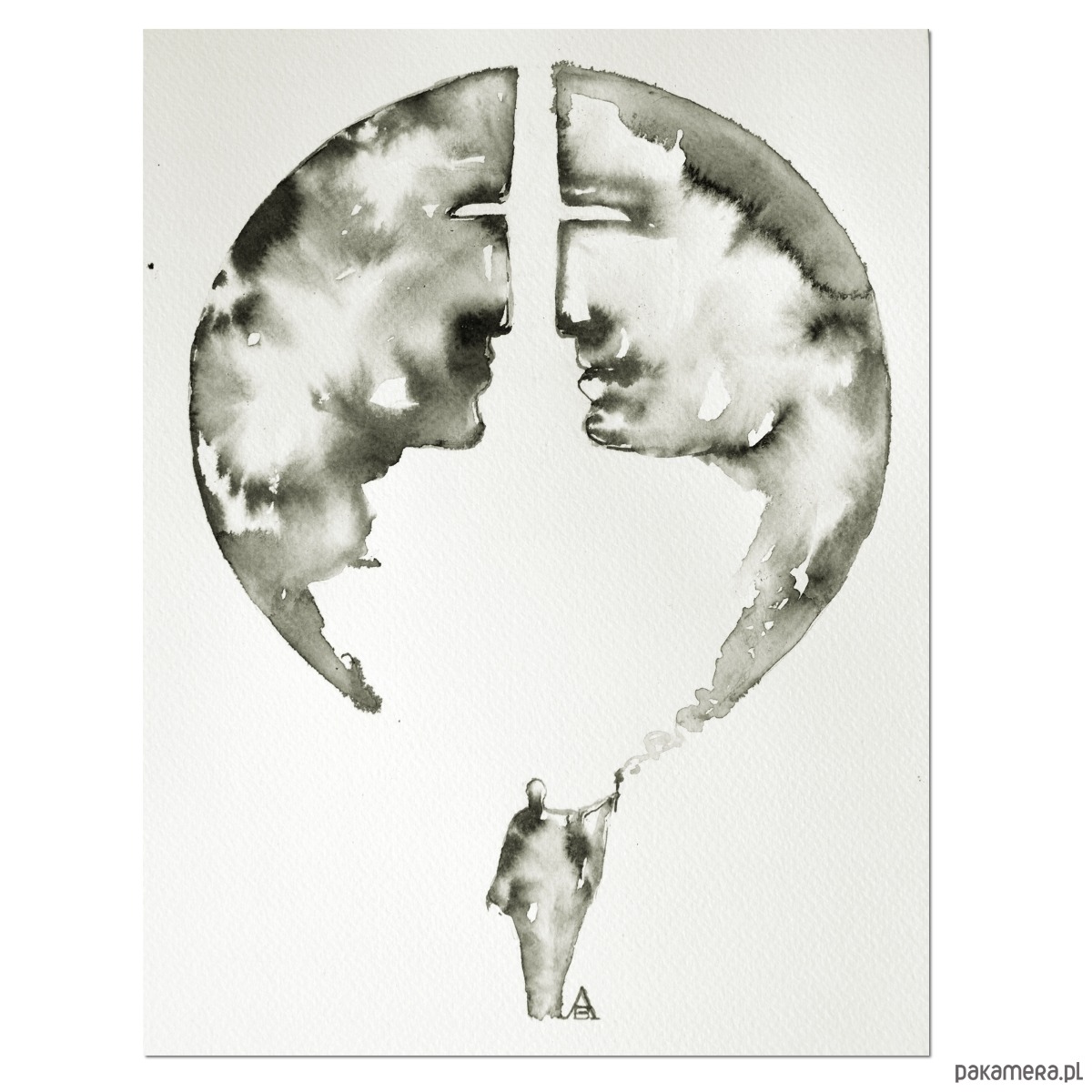 Czarno-biała grafika - oryginalny obraz malowany tuszem na papierze akwarelowym o gramaturze 300 g, w formacie 24/32 cm. Kolor papieru (tła) to złamana biel/ jasne ecru.