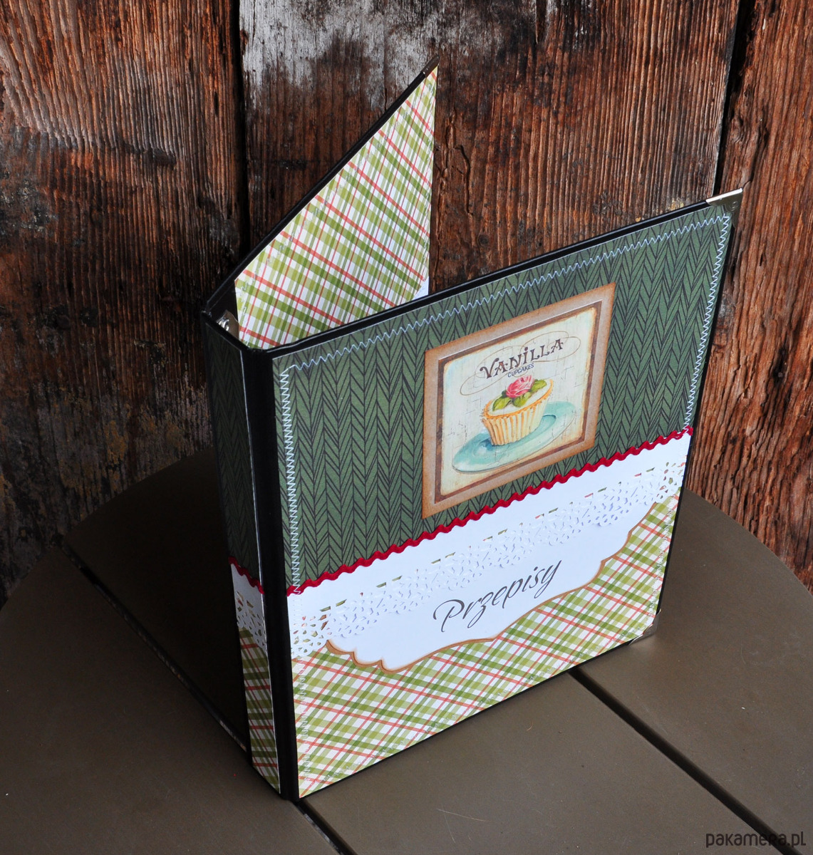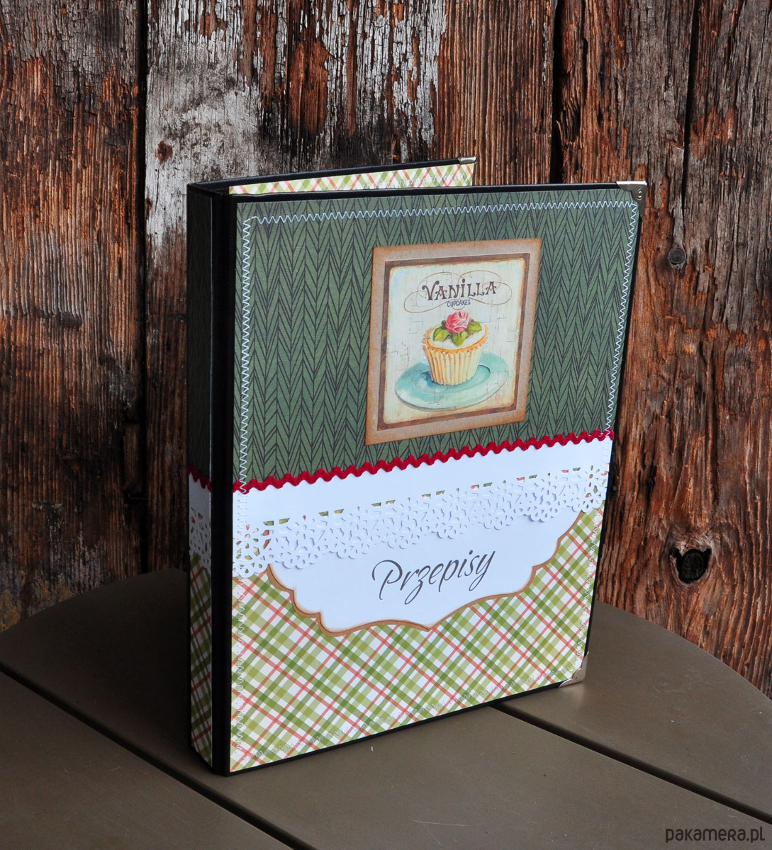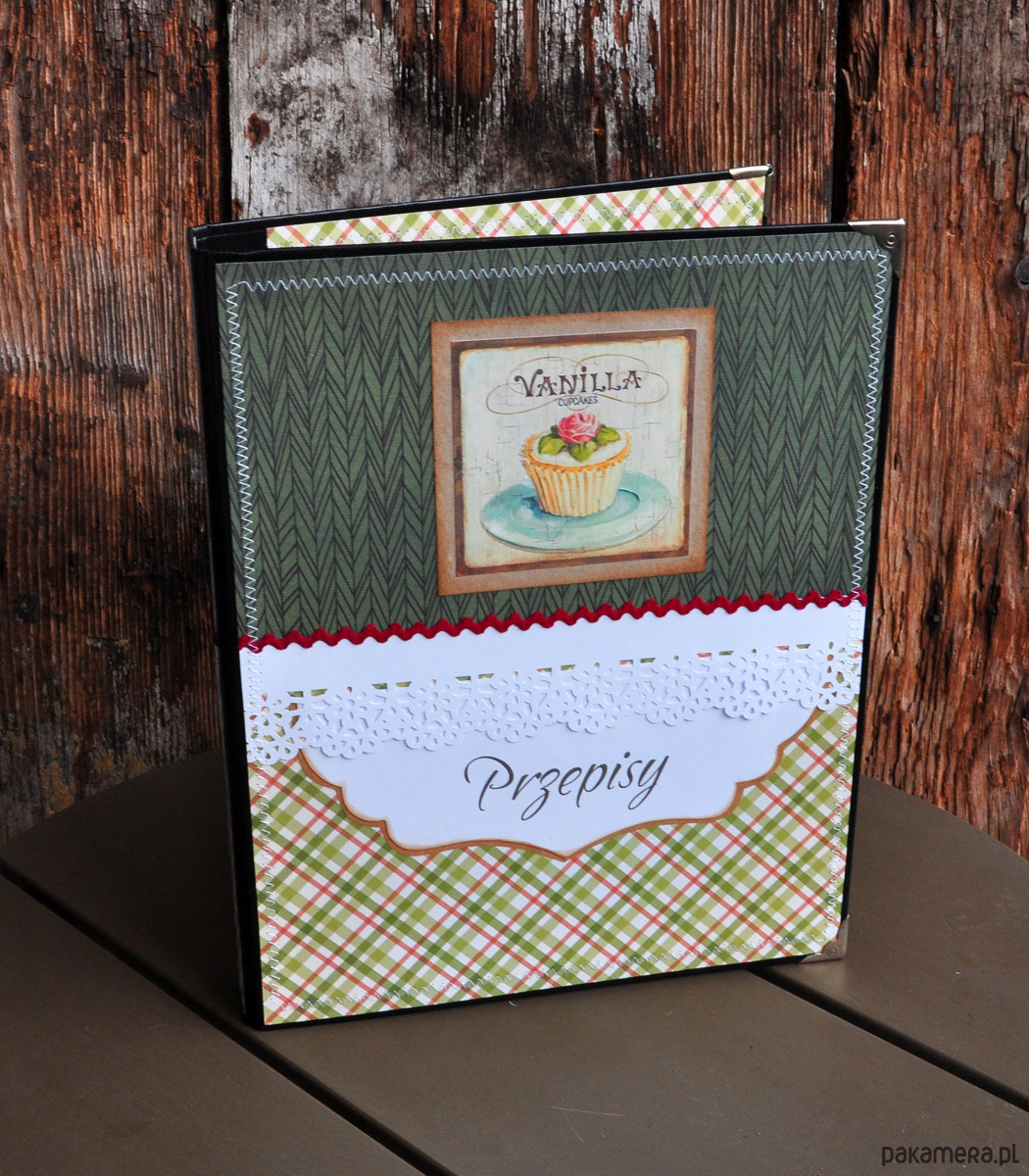 Piękny i wyjątkowy segregator na przepisy kulinarne w stylu retro; ozdobiony metodą scrapbookingu; przeszywany maszynowo, postarzany; może stanowić oryginalny prezent; rozmiar A4; zapraszam
