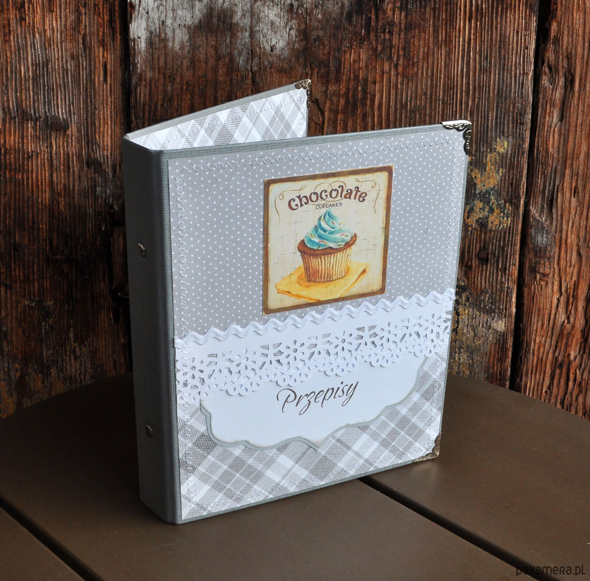 Piękny i wyjątkowy segregator na przepisy kulinarne w stylu retro; ozdobiony metodą scrapbookingu; przeszywany maszynowo, postarzany; może stanowić oryginalny prezent; rozmiar A5; zapraszam