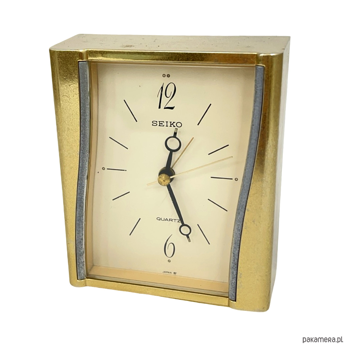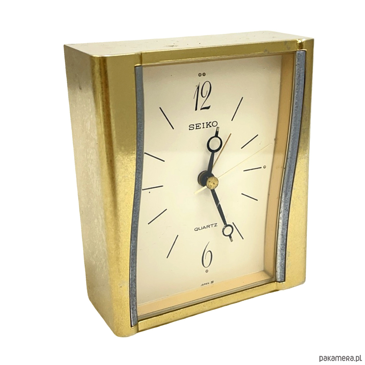 SEIKO Quartz zegar stołowy / budzik Japonia lata 80. złota obudowa vintage