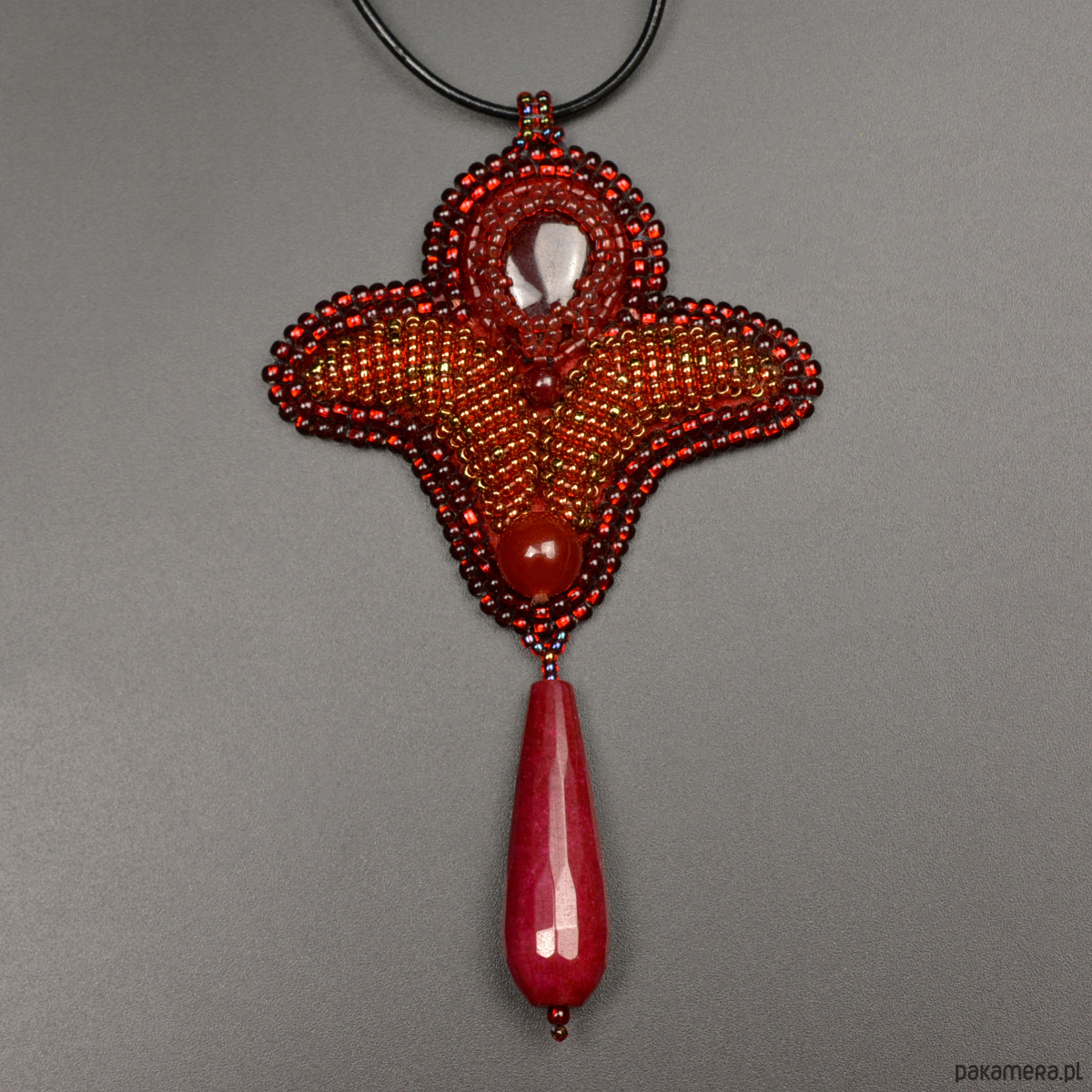 Misterny wisior wykonany niezwykle czasochłonną techniką haftu koralikowego.
