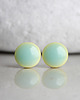 Ceramiczne okrągłe kolczyki w formie sztyftów, ręcznie wykonane z barwionej na jasnożółto porcelany, jednostronnie szkliwione mieszanką bladozielonego szkliwa, na antyalergicznych sztyftach w kolorze srebrnym. Średnica ok. 9mm. Polecam