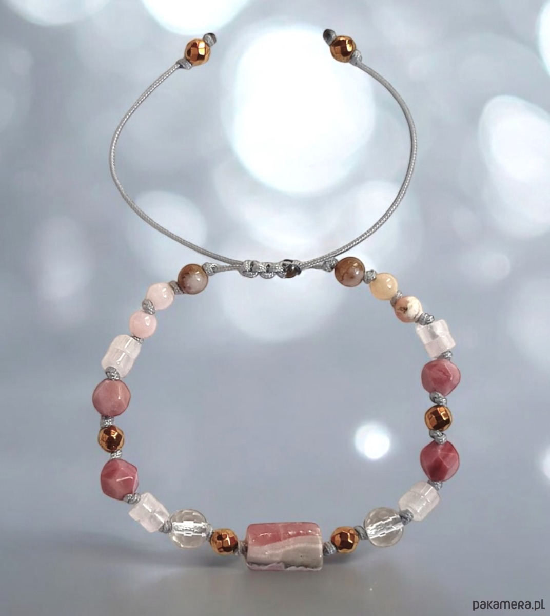 - Rodzaj kamienia: hematyt, kryształ górski, kwarc różowy, opal
