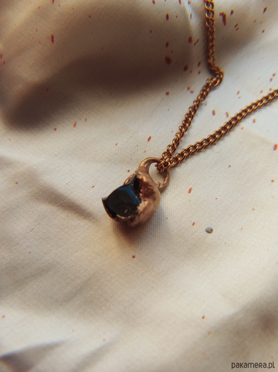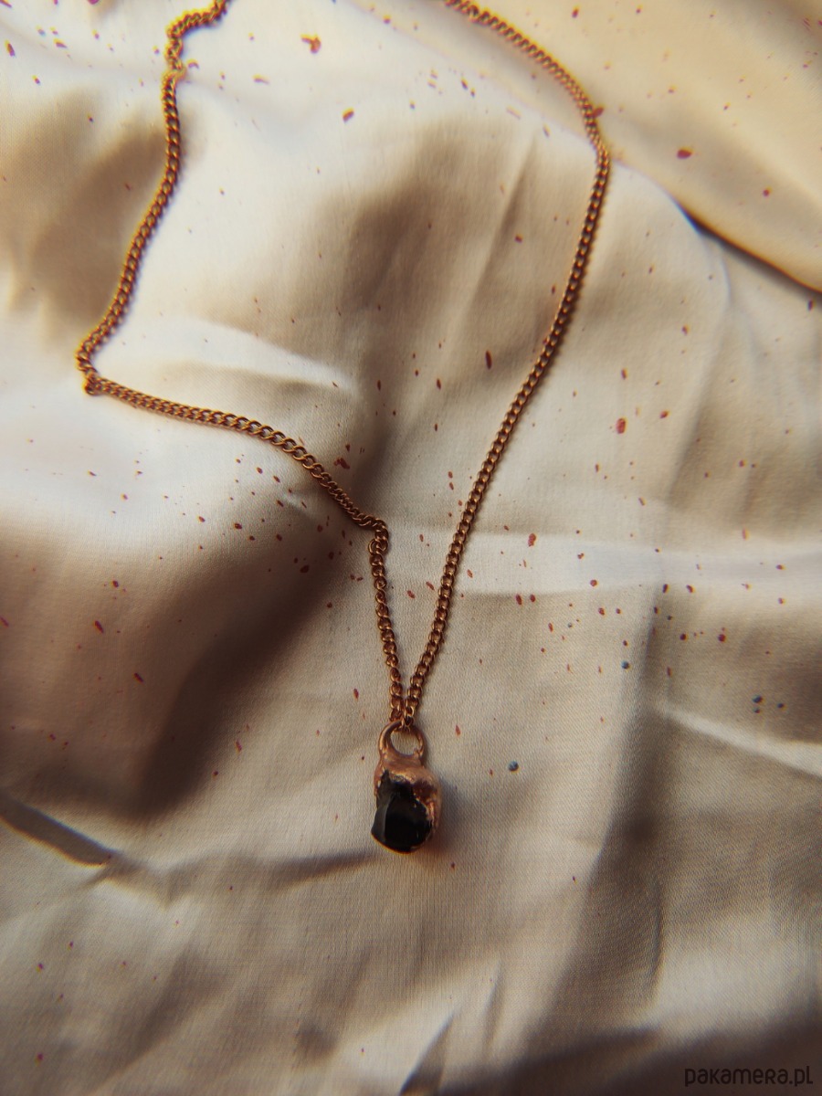 Surowa bryłka obsydianu na łańcuszku vintage.