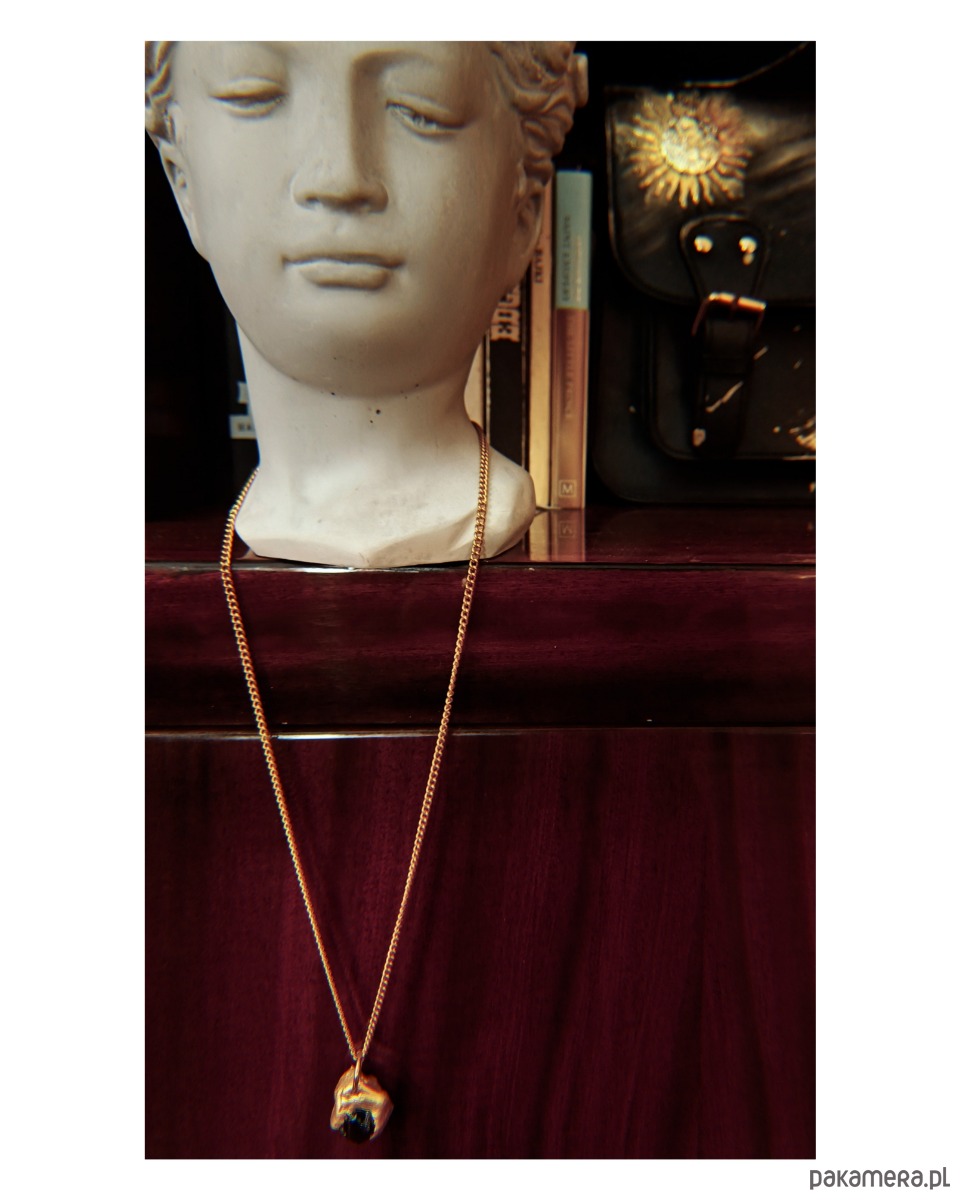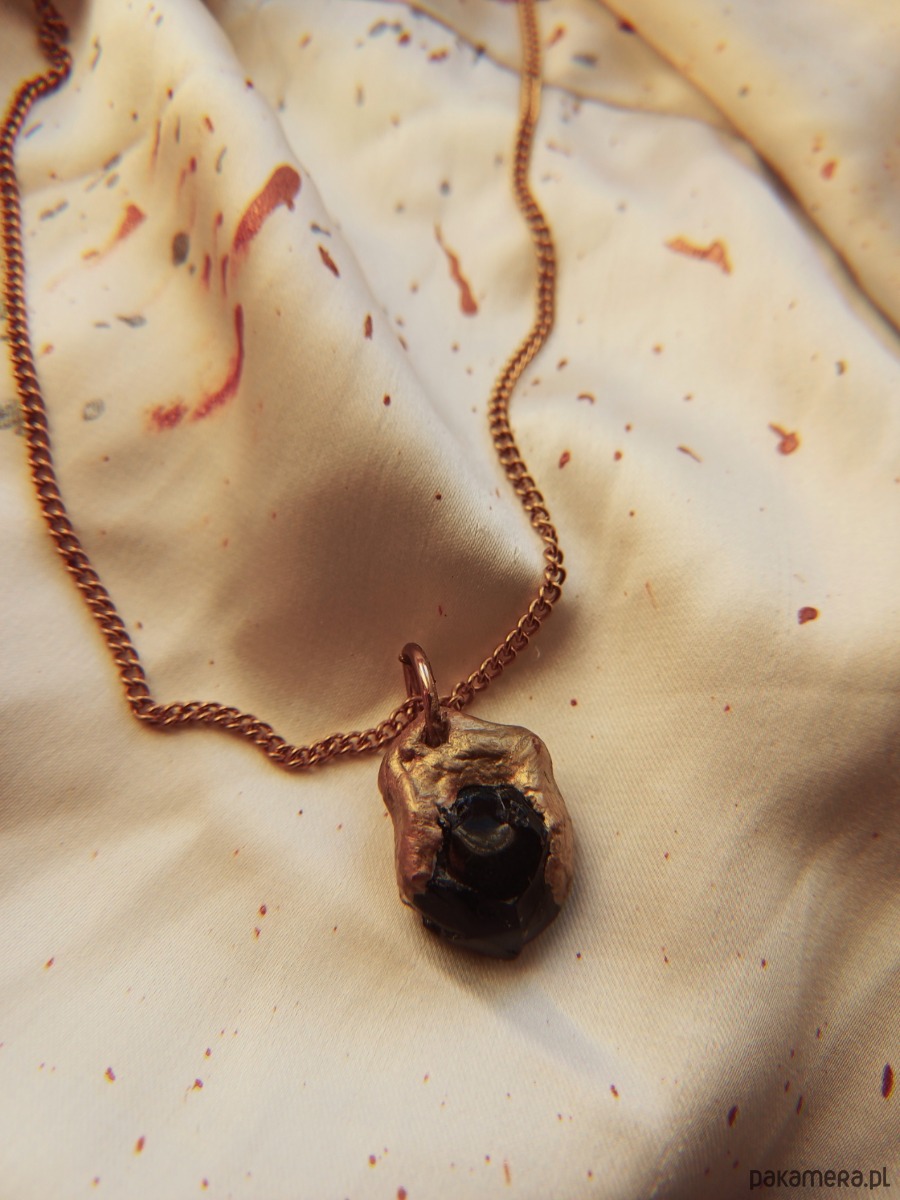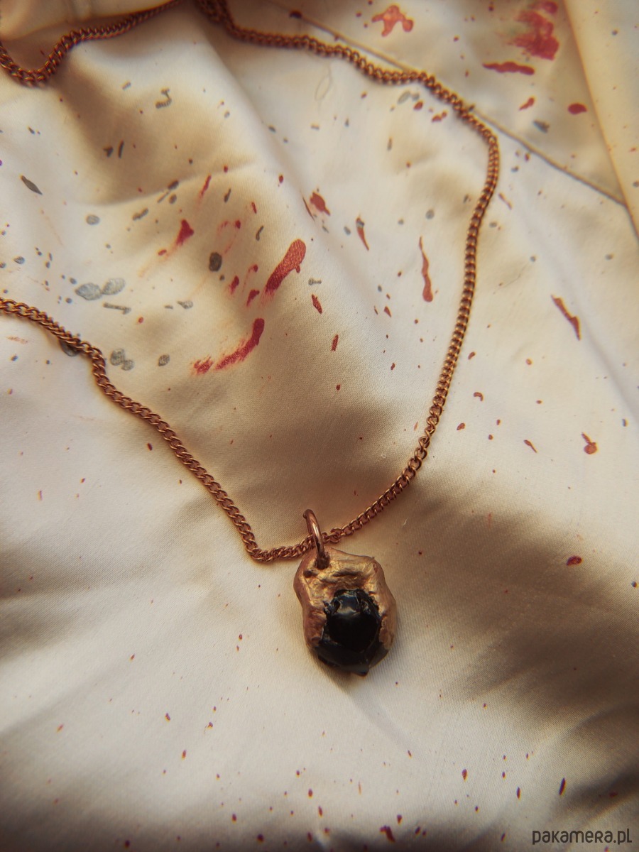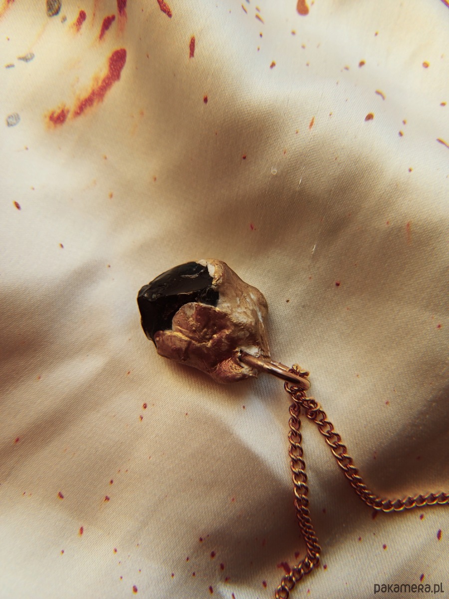 Surowa bryłka obsydianu na łańcuszku vintage.
