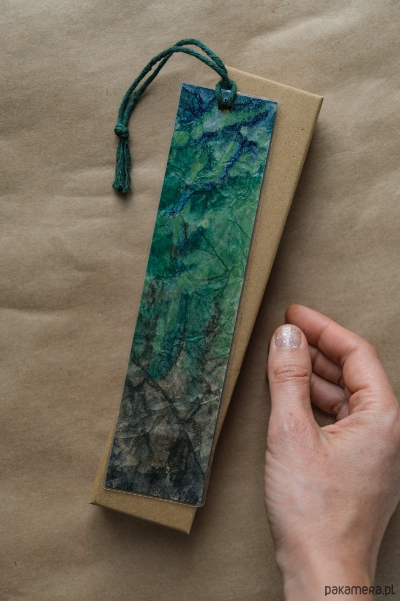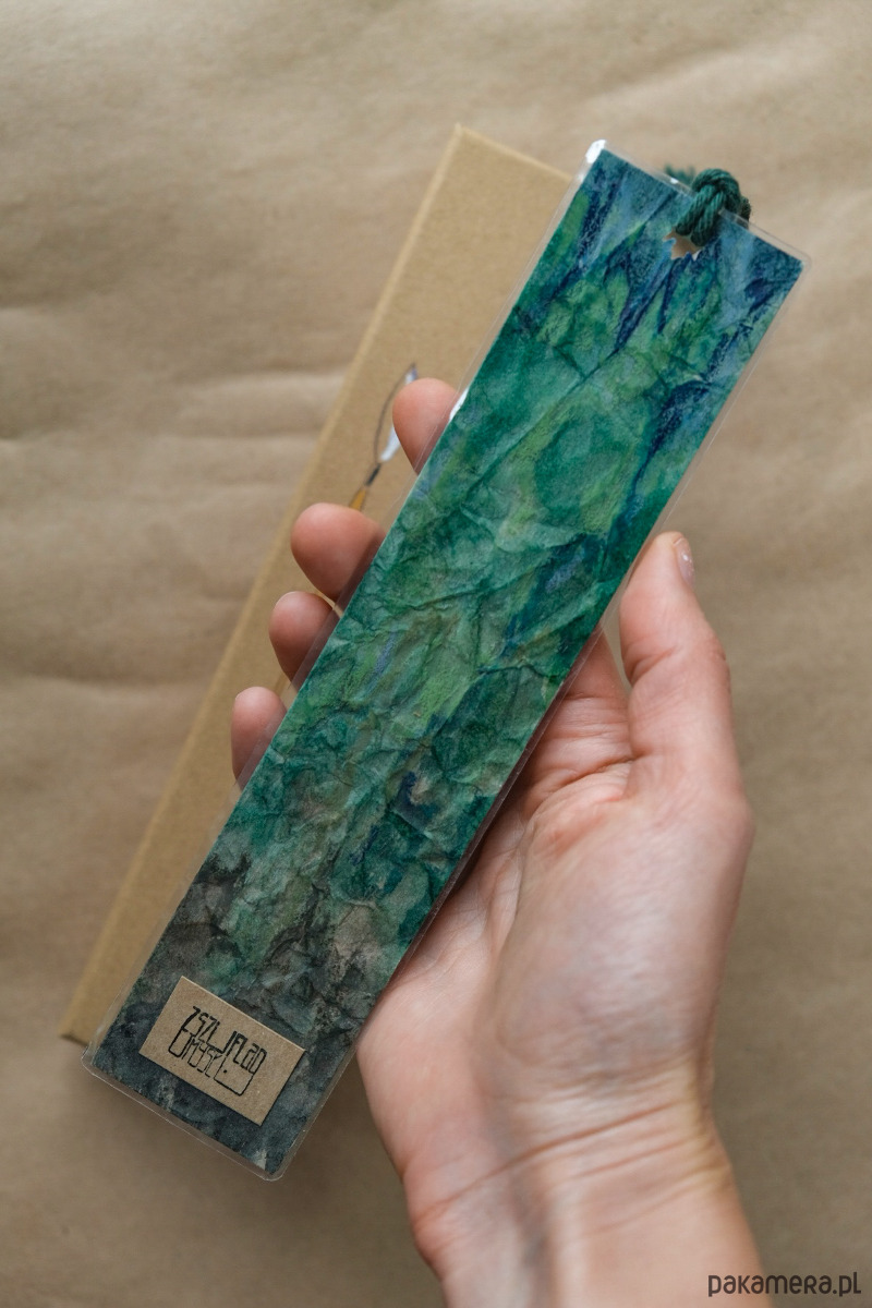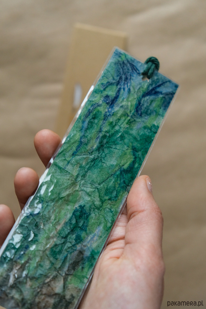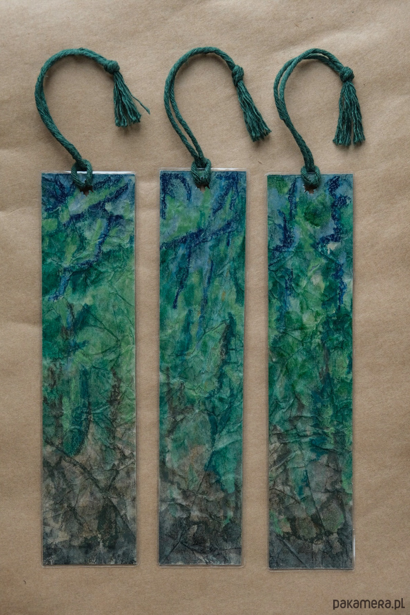 Zakładki zostały namalowane ręcznie akwarelami. Przedstawiają abstrakcyjną wizję lasu w kolorach dzikich drzew.