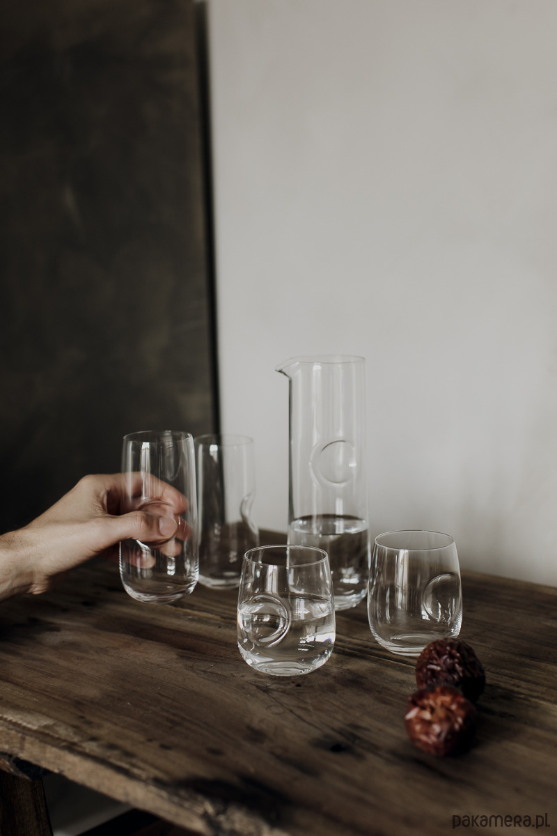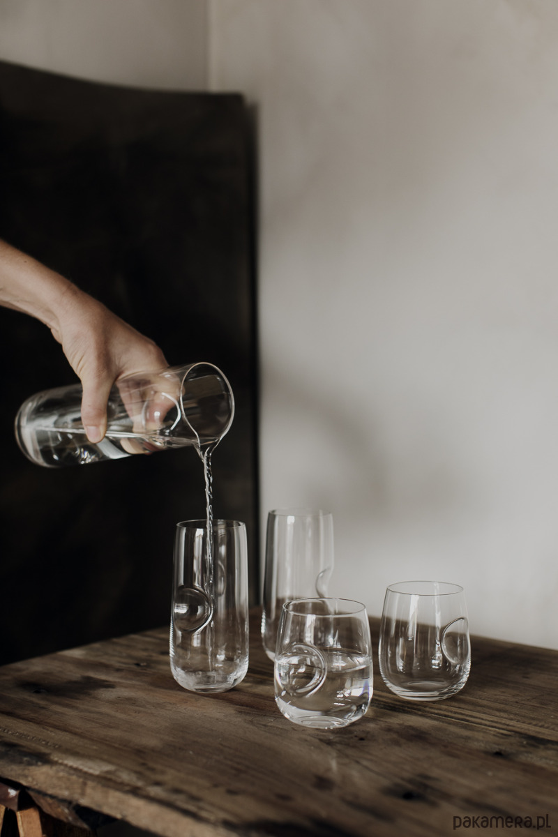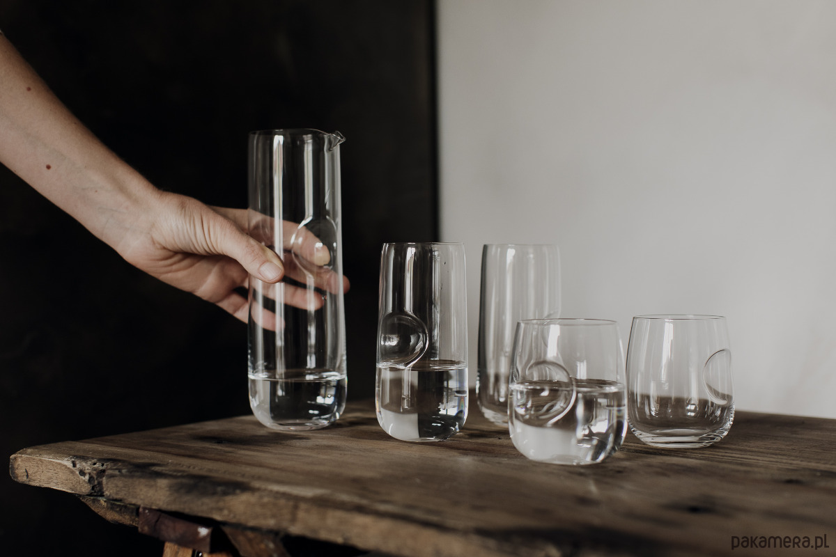 W SECIE ZNAJDZIESZ KARAFKĘ I DWIE WIELKOŚCI SZKLANEK, DO SERWOWANIA WODY I NAPOJÓW.