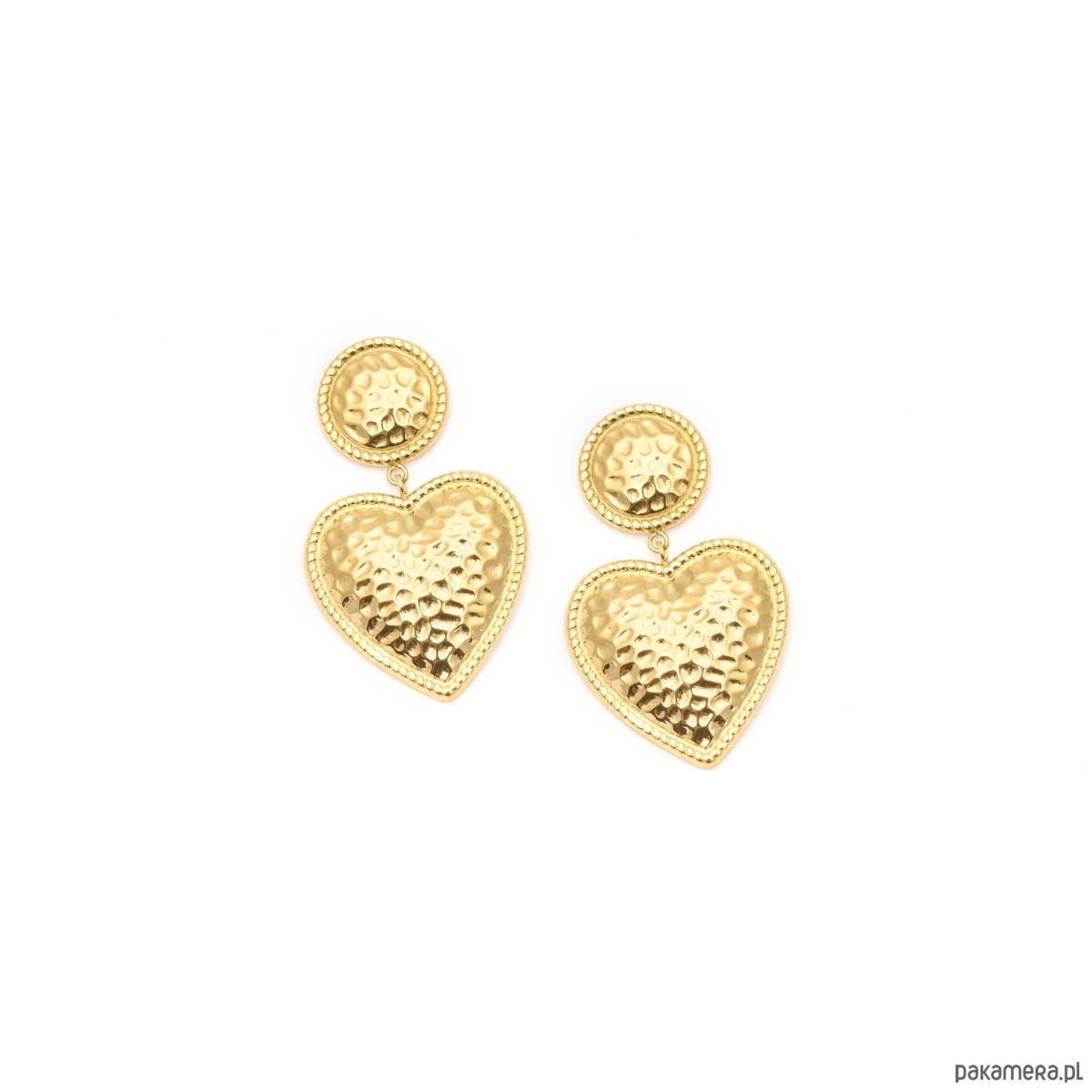 Serca tłoczone - kolczyki sztyfty ze stali szlachetnej pozłacanej