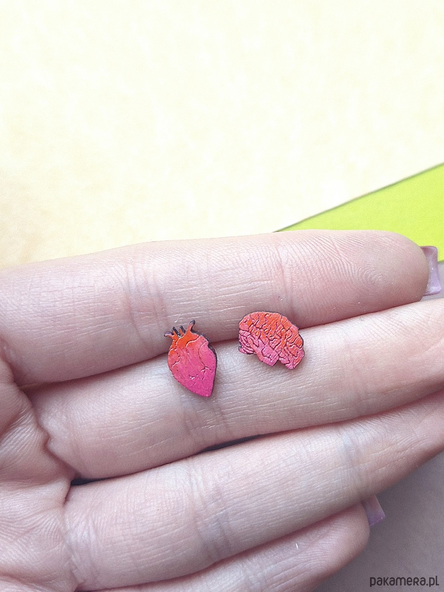 Lekkie kolczyki-sztyfty wykonane na podstawie autorskiego rysunku. Zrobione z drewna i lakierowane. Każda para będzie niepowtarzalna. Wielkość ok 1cm. Sztyfty nie uczulą, bo są z silikonu!