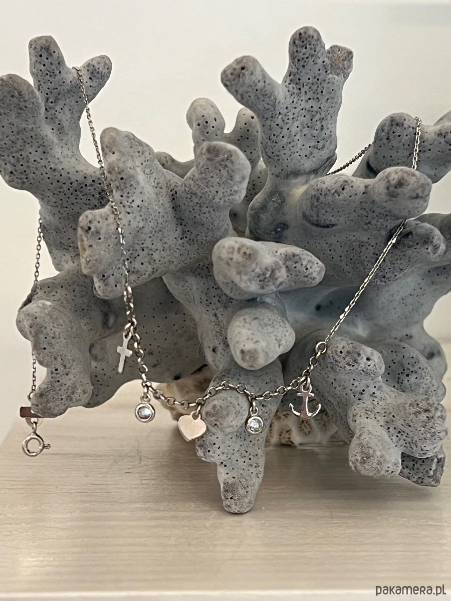 Wymiary zawieszki: serce ok. 0,60 cm na 0,60 cm, krzyż ok: 0,90 cm na 0,40 cm, kotwica ok: 0,80 cm na 0,70 cm.