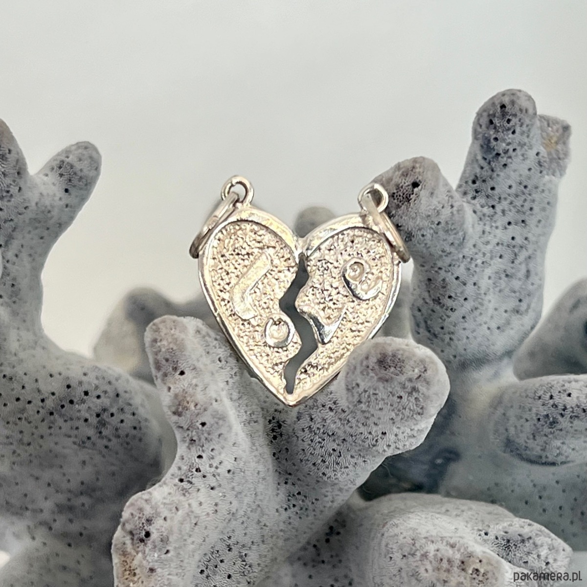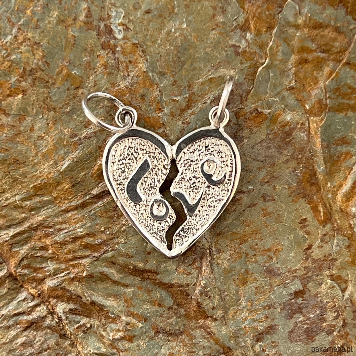 Wyjątkowa srebrna zawieszka w kształcie serca z napisem „LOVE”. Serce można rozdzielić na dwie połówki – idealne dla par, przyjaciół lub bliskich osób jako symbol więzi i miłości.