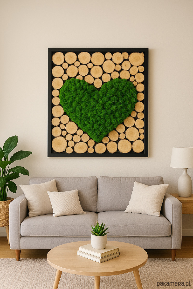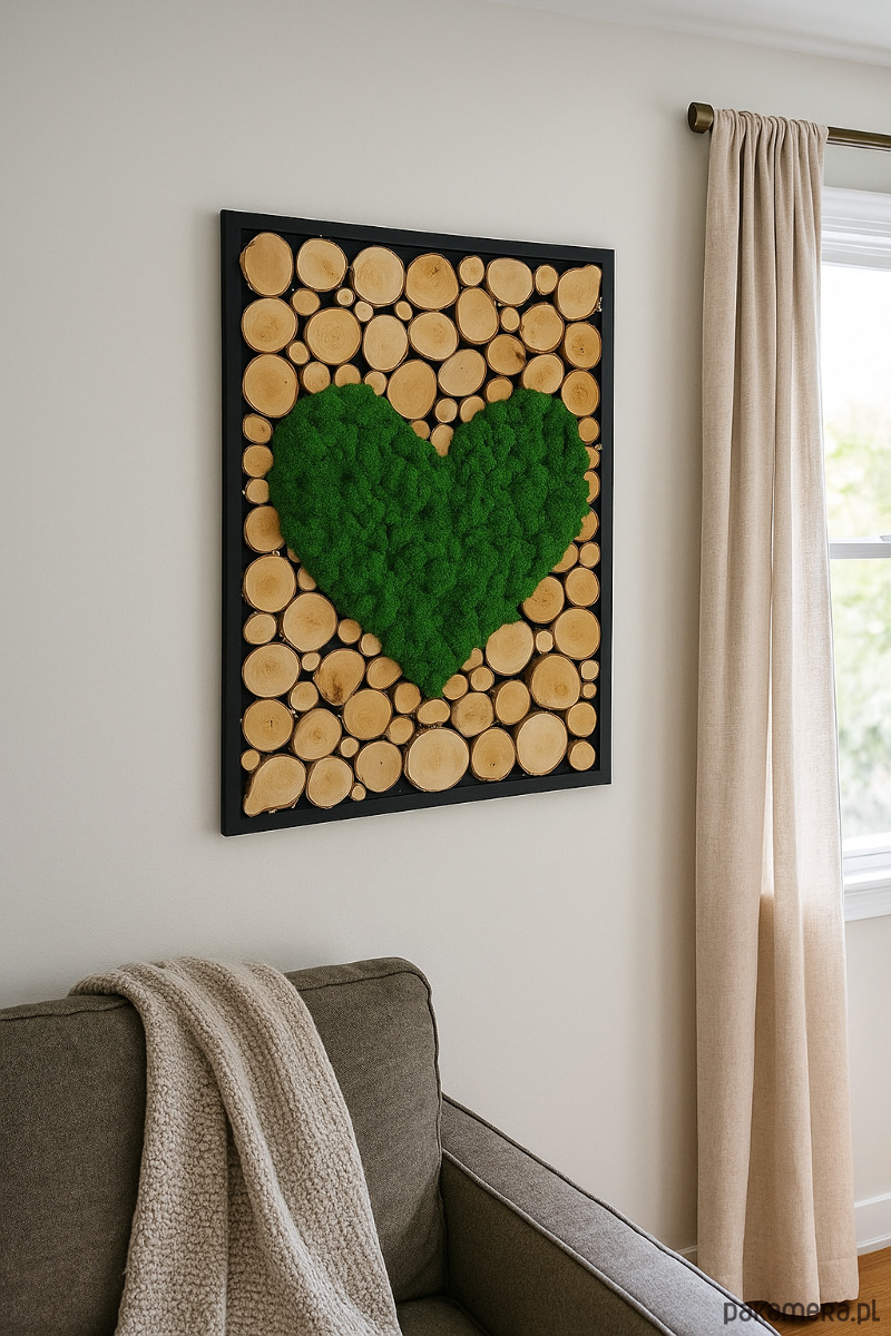 Serce na plastrach drewna życia mech chrobotek dekoracja obraz