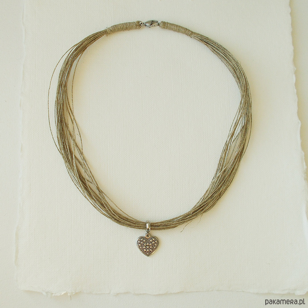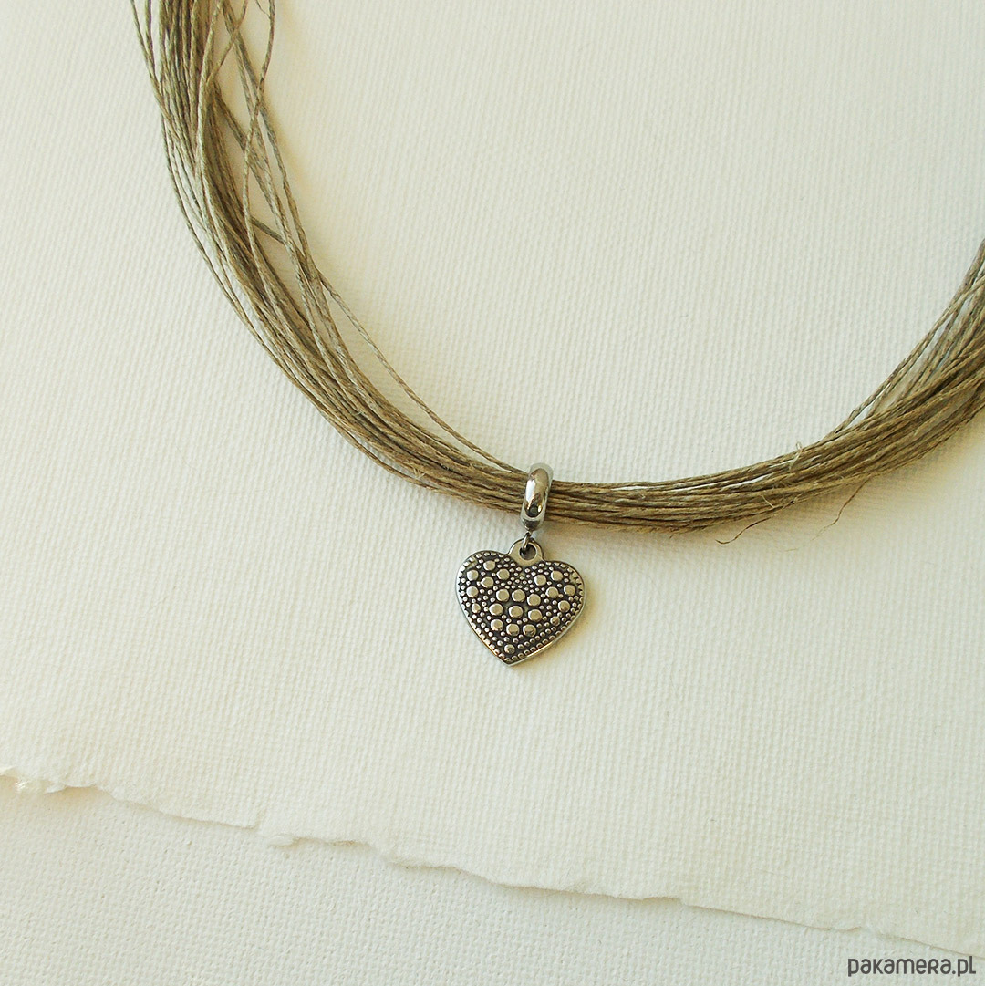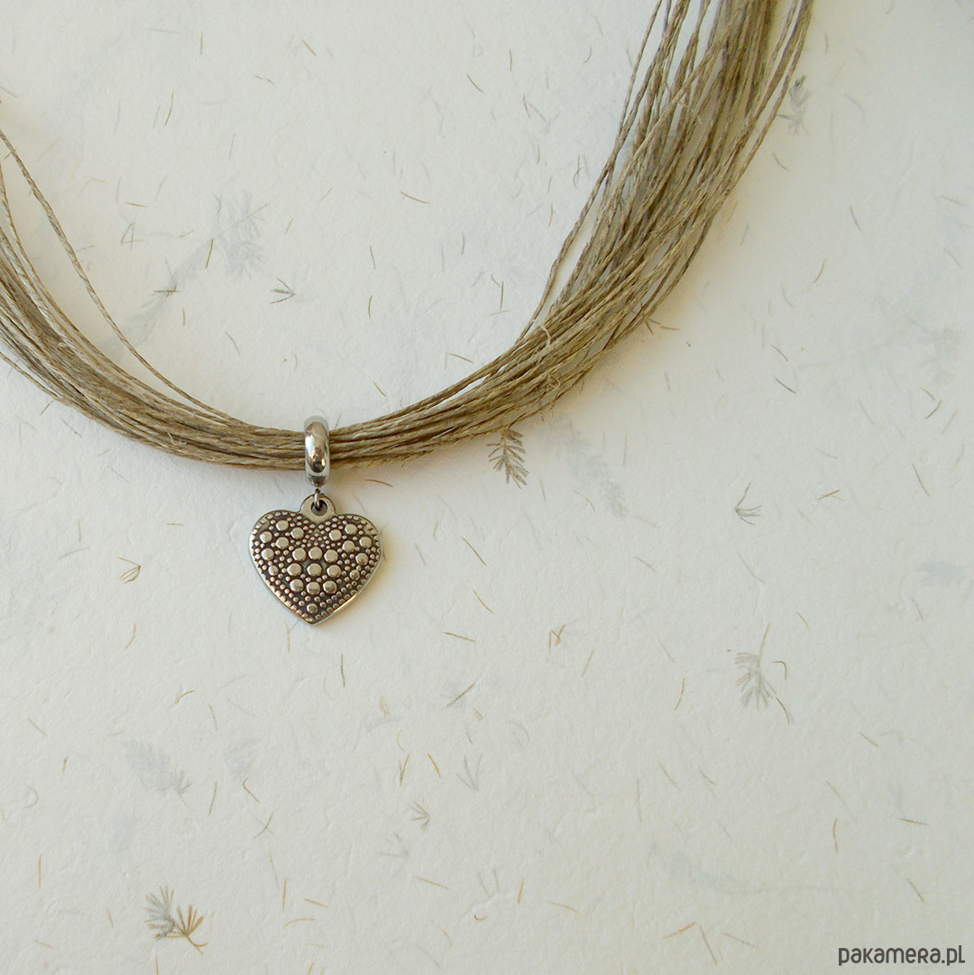 Naszyjnik lniany z sercem ze stali szlachetnej