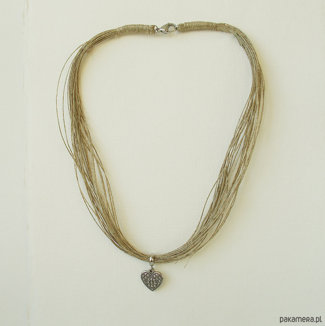 Naszyjnik lniany z sercem ze stali szlachetnej