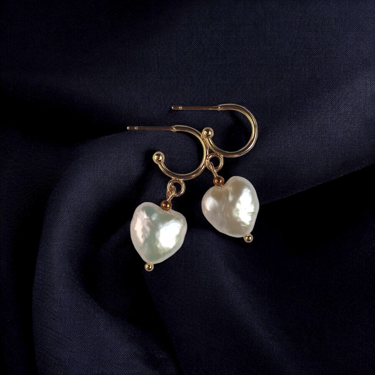 TUTAJ: kolczyki wykonane z przepięknych pereł hodowlanych w kształcie serca w klasycznym odcieniu złamanej bieli.