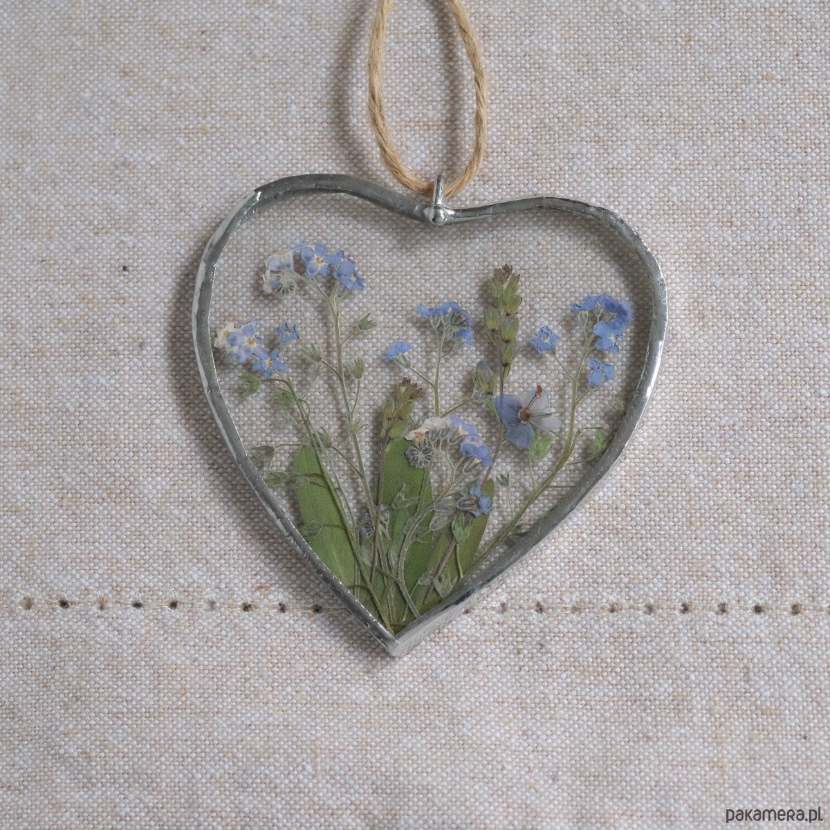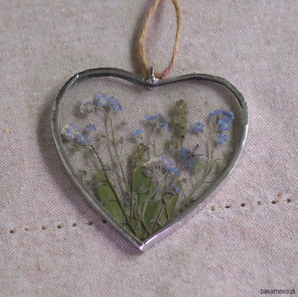 Witrażowe serce z zamkniętymi w szkle suszonymi niezapominajkami!