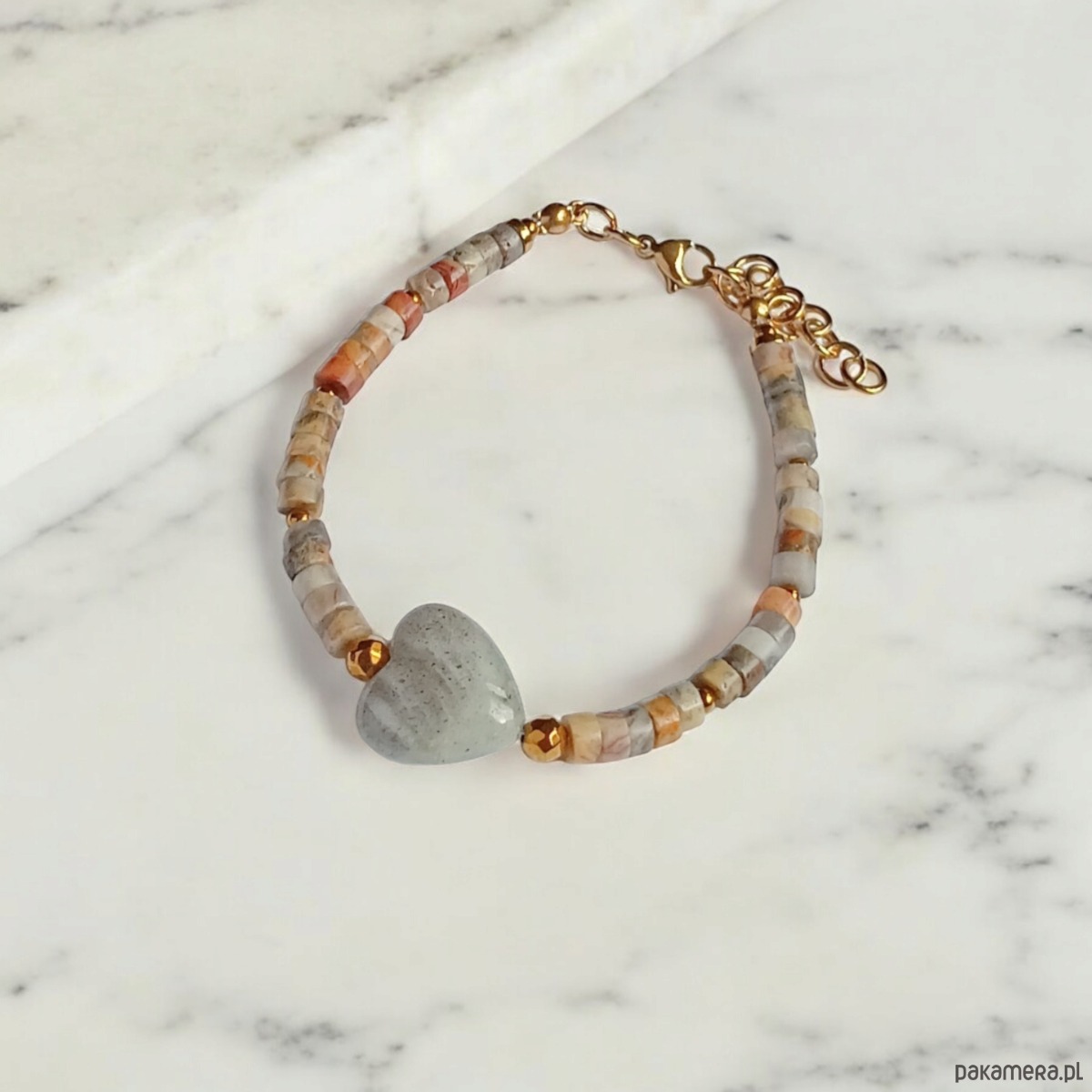 Serce z labradorytu, agat : bransoletka regulowana