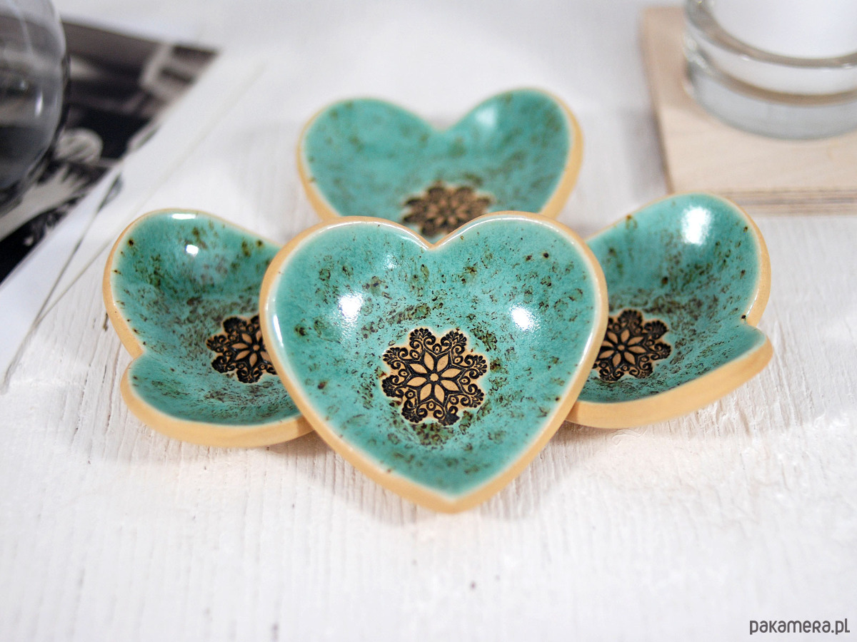 Ręcznie robiona miseczka w kształcie serca to uniwersalny i elegancki drobiazg, który idealnie sprawdzi się jako podstawka na pierścionki, kolczyki lubinne drobiazgi. Ze względu na swój kształt i głęboki kolor, stanowi doskonały wybór na talerzyk na obrączki podczas ceremonii ślubnej lub romantyczny prezent na Walentynki, rocznicę i Dzień Mamy.