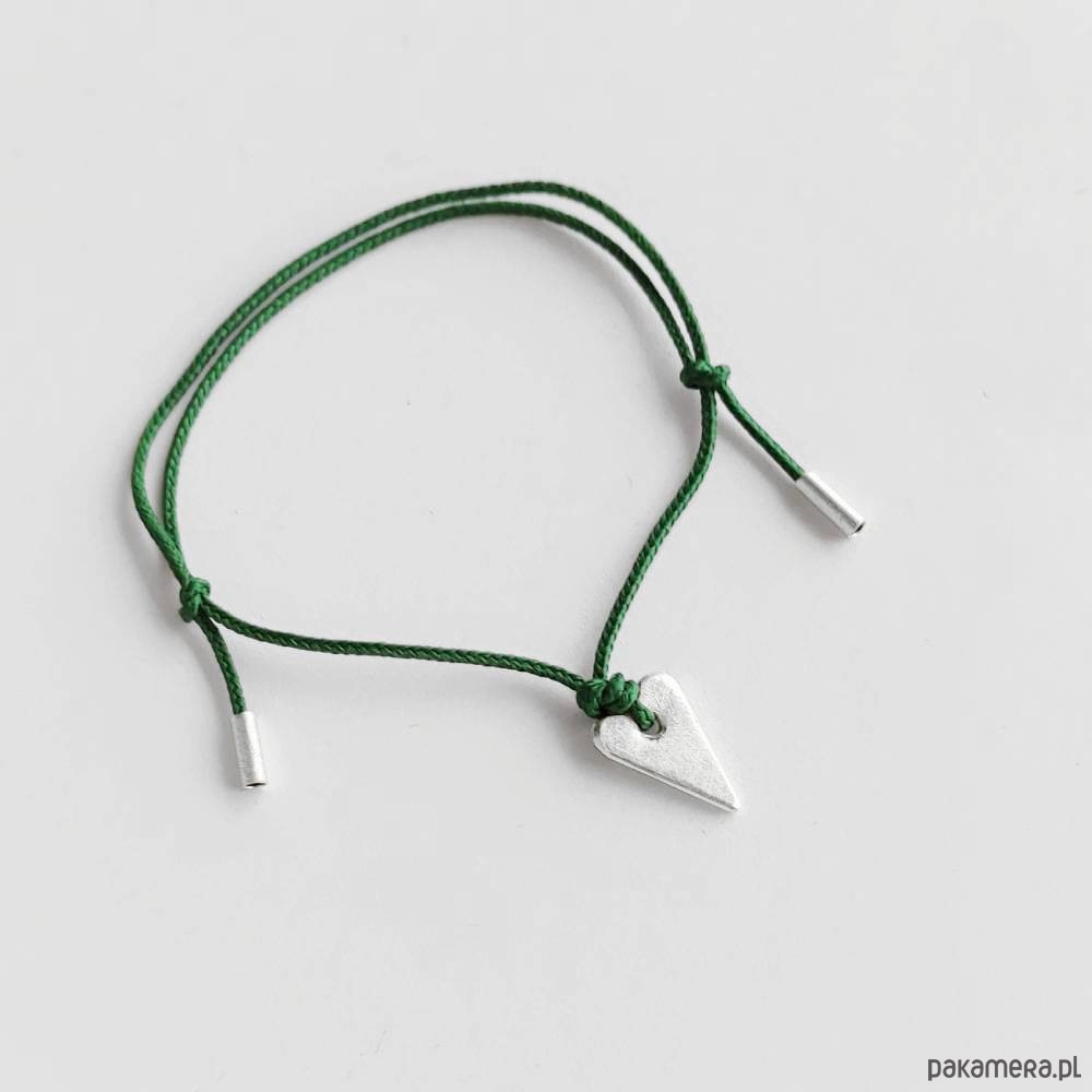 Serduszko bransoletka - uroczy dodatek . Idealna dla kobiet ceniące ładną oraz oryginalna biżuterii. Bransoletka wykonana jest z: srebro, ozdobny sznurek. Srebro zmatowione. Długość zawieszki - ok. 1,4 cm. Szerokość zawieszki - ok. 0,8 cm.