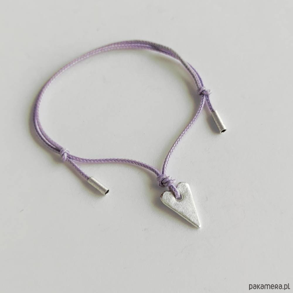 Serduszko bransoletka - uroczy dodatek . Idealna dla kobiet ceniące ładną oraz oryginalna biżuterii. Bransoletka  wykonana jest  z: srebro, ozdobny  sznurek.   Srebro zmatowione.    Długość zawieszki -  ok. 1,4 cm.   Szerokość zawieszki  - ok. 0,8 cm.