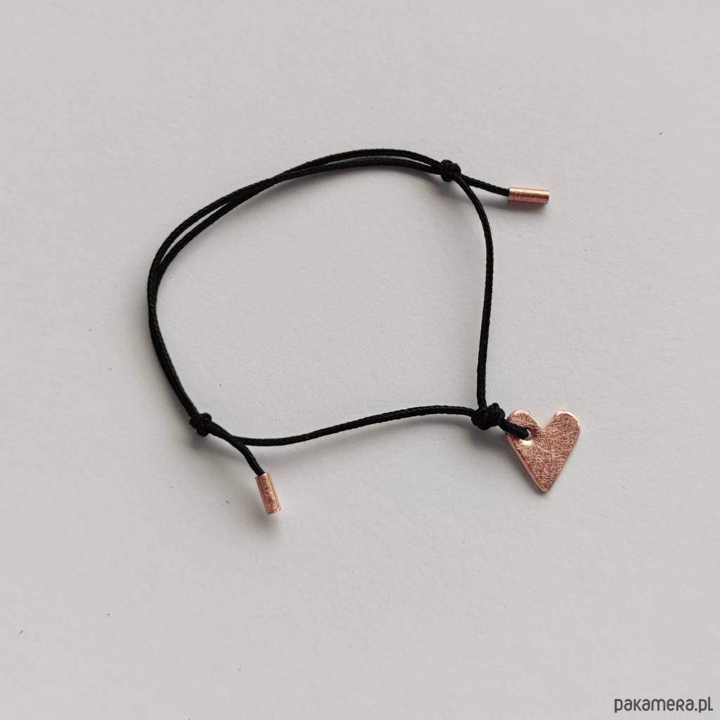 Serduszko bransoletka - uroczy dodatek . Idealna dla kobiet ceniące ładną oraz oryginalna biżuterii. Bransoletka wykonana jest z miedź, ozdobny sznurek. Miedź zmatowiony. Długość zawieszki - ok. 1 cm. Szerokość zawieszki - ok. 1 cm.