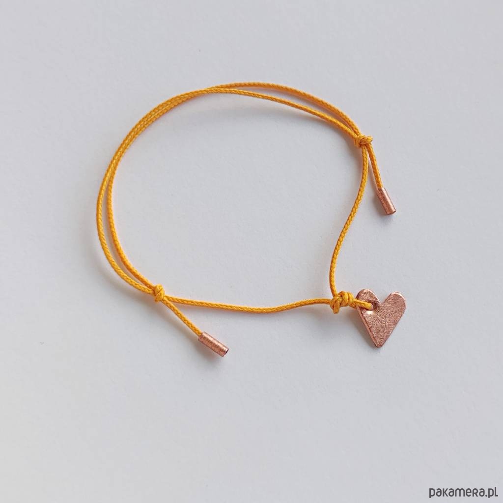 Serduszko bransoletka - uroczy dodatek . Idealna dla kobiet ceniące ładną oraz oryginalna biżuterii. Bransoletka wykonana jest z miedź, ozdobny sznurek. Miedź zmatowiony. Długość zawieszki - ok. 1 cm. Szerokość zawieszki - ok. 1 cm.
