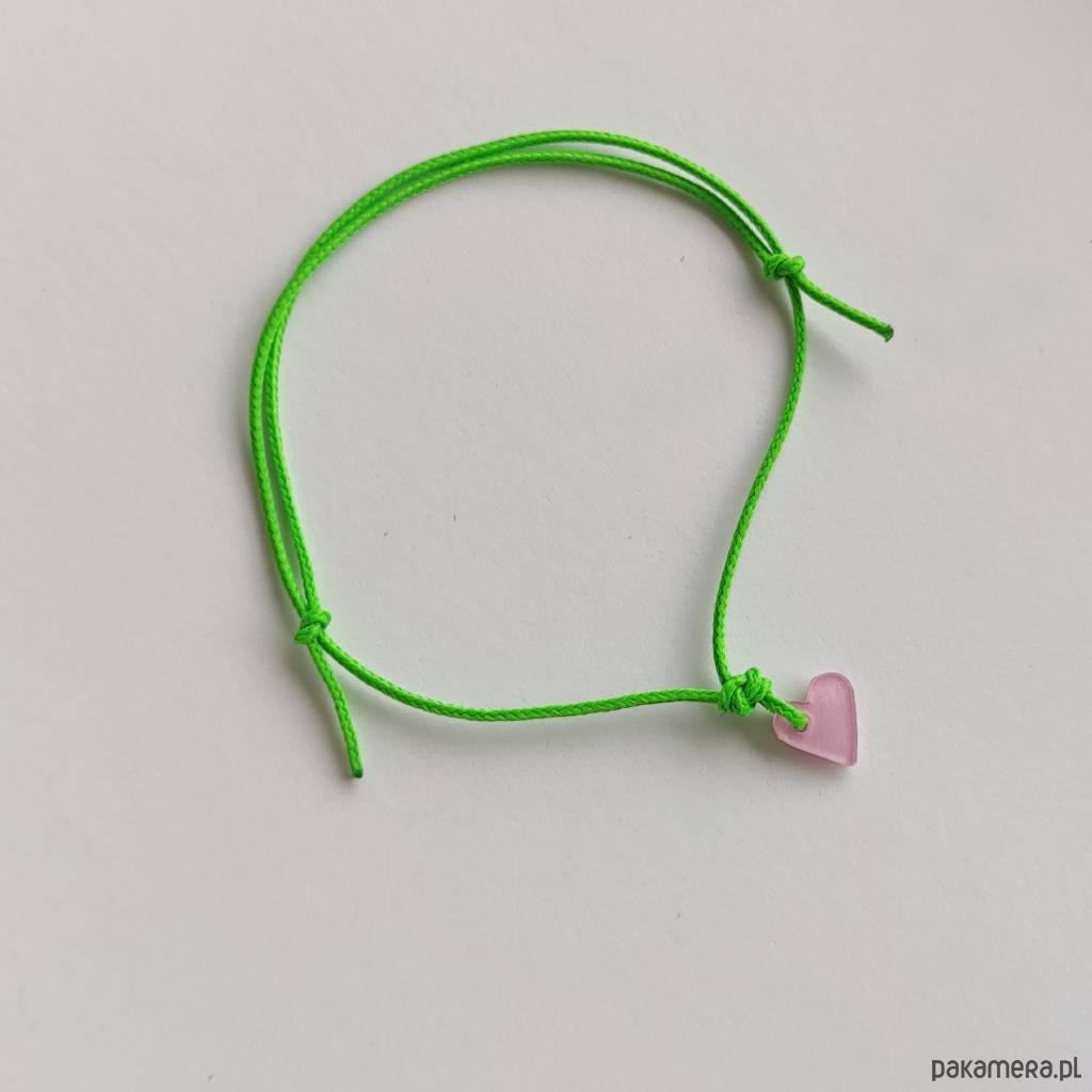Serduszko bransoletka - uroczy dodatek . Idealna dla kobiet ceniące ładną oraz oryginalna biżuterii. Bransoletka wykonana jest z: tworzywo sztuczne, ozdobny sznurek. Długość zawieszki - ok. 0,7cm. Szerokość zawieszki - ok. 0,7 cm.