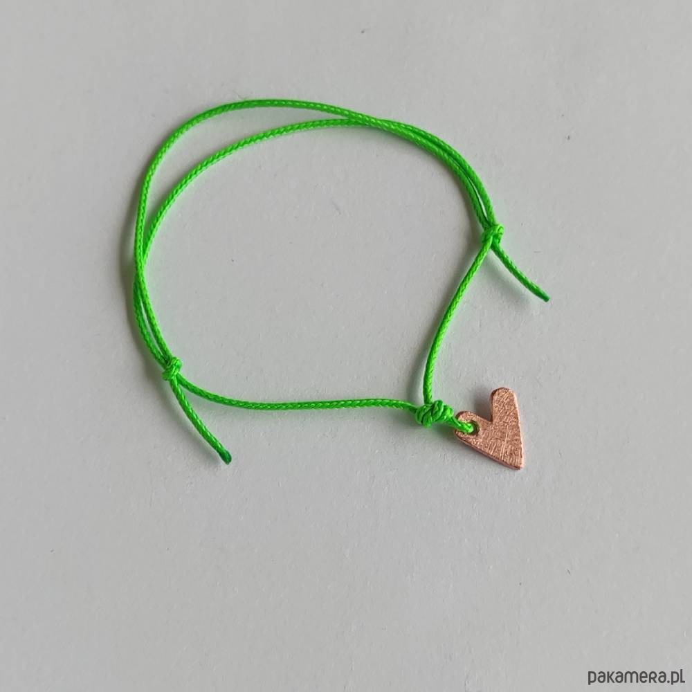 Serduszko bransoletka - uroczy dodatek . Idealna dla kobiet ceniące ładną oraz oryginalna biżuterii. Bransoletka wykonana jest z miedź, ozdobny sznurek. Miedź zmatowiony. Długość zawieszki - ok. 1 cm. Szerokość zawieszki - ok. 1 cm.
