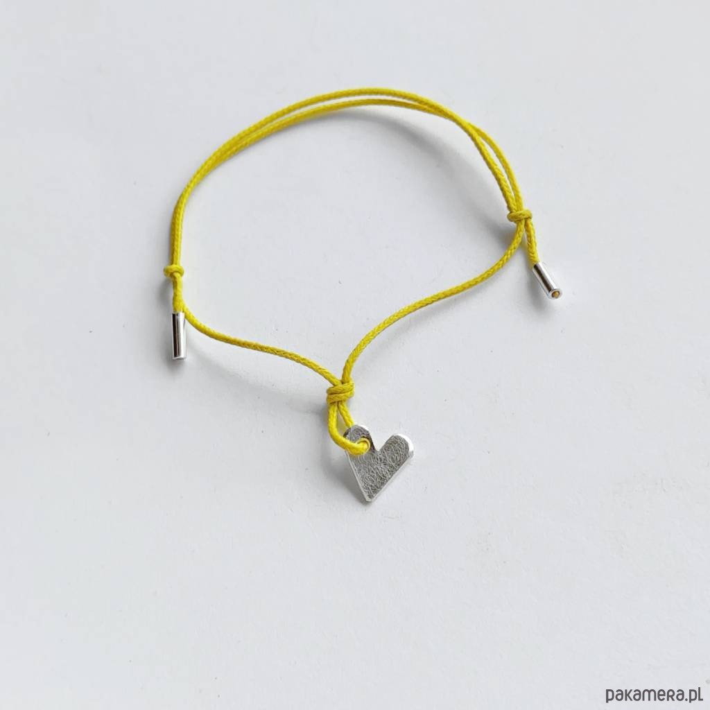 Serduszko bransoletka - uroczy dodatek . Idealna dla kobiet ceniące ładną oraz oryginalna biżuterii. Bransoletka wykonana jest z: srebro, ozdobny sznurek. Srebro - zmatowione. Długość zawieszki - ok 0,8 cm. Szerokość zawieszki - 0,7