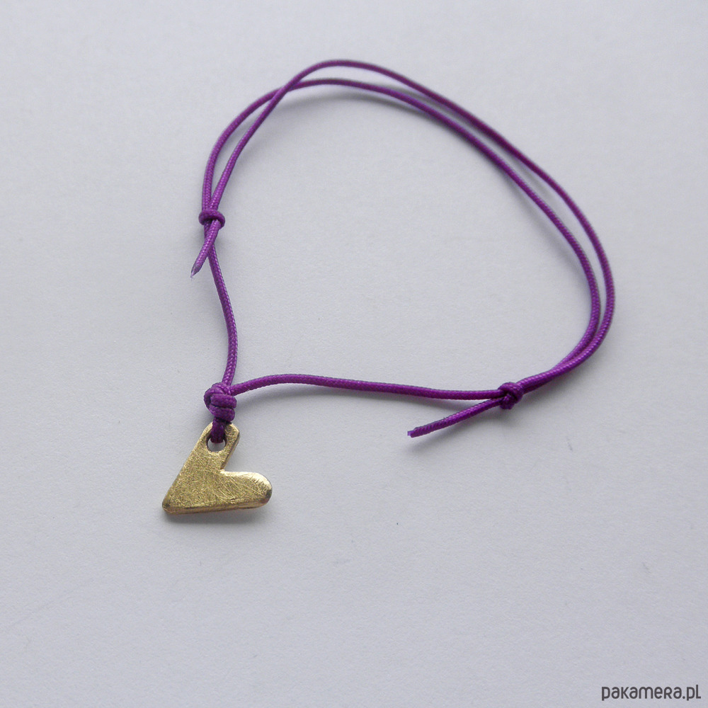 Serduszko bransoletka - uroczy dodatek . Idealna dla kobiet ceniące ładną oraz oryginalna biżuterii. Bransoletka wykonana jest z mosiądz, ozdobny sznurek. Mosiądz zmatowiony. Długość zawieszki - ok. 1 cm. Szerokość zawieszki - ok. 1 cm.
