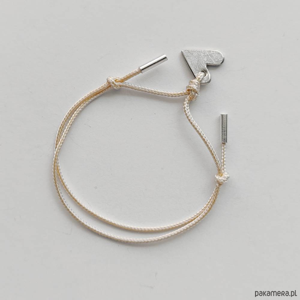 Serduszko bransoletka - uroczy dodatek . Idealna dla kobiet ceniące ładną oraz oryginalna biżuterii. Bransoletka wykonana jest z: srebro, ozdobny sznurek. Srebro - zmatowione. Długość zawieszki - ok 0,8 cm. Szerokość zawieszki - 0,7