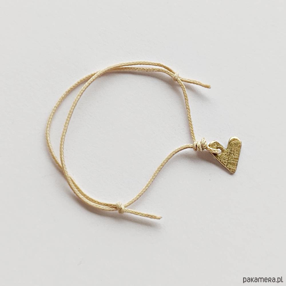 Serduszko bransoletka - uroczy dodatek .Motyw serca to jeden z najbardziej uniwersalnych i ponadczasowych symboli. Idealna dla kobiet ceniące ładną oraz oryginalna biżuterii. Bransoletka wykonana jest z mosiądz, ozdobny sznurek. Mosiądz zmatowiony. Długość zawieszki - ok. 1 cm. Szerokość zawieszki - ok. 1 cm.