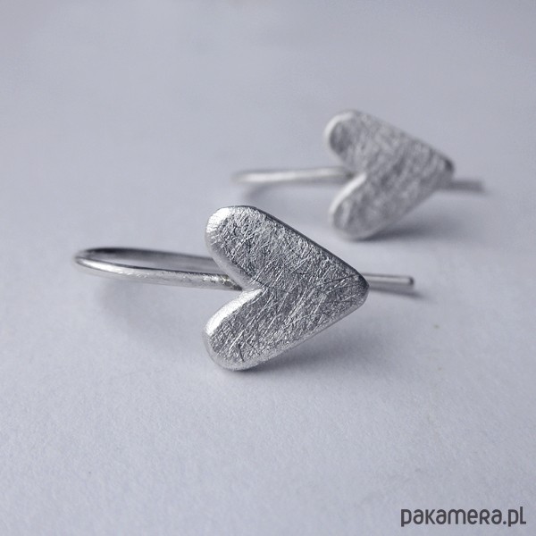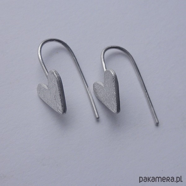 Kolczyki wykonane są ze srebra. Srebro - próby 0,925, zmatowione Wielkość serduszka 1cm/1cm Długość kolczyków - 2 cm