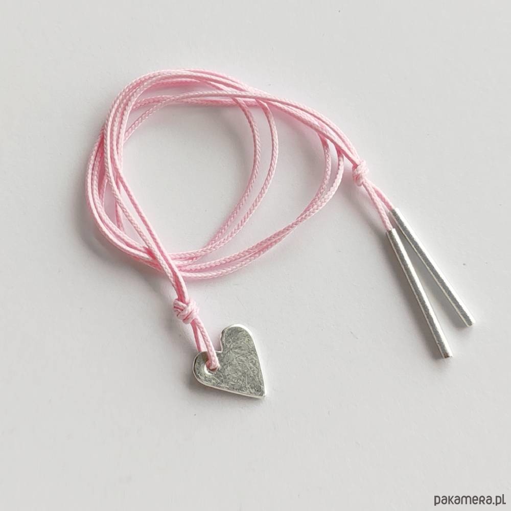 Serduszko bransoletka - uroczy dodatek . Idealna dla kobiet ceniące ładną oraz oryginalna biżuterii. Wisior wykonany jest ze srebro pr. 925, ozdobny sznurek. Srebro- zmatowiony. Długość sznurka - ok. 60cm. Wielkość serduszka 1,5 cm/ 1,5 cm.