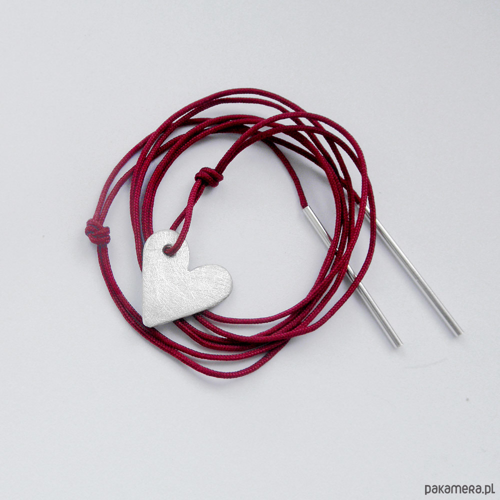 Serduszko bransoletka - uroczy dodatek . Idealna dla kobiet ceniące ładną oraz oryginalna biżuterii. Wisior wykonany jest ze srebra., ozdobny sznurek Sebro - próby 0,925, zmatowione, , Długość sznurka - ok. 60cm. Długość zawieszki - ok. 15 mm. Szerokość zaiwieszki - ok. 15 mm. Waga - ok. 3g
