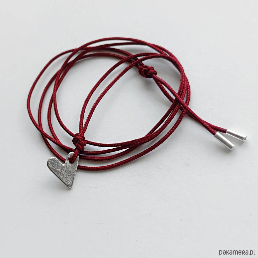 Wisiorek wykonany jest z, ze srebra. Srebro - próby 0,925, zmatowione, ozdobny sznurek. Srebro - zmatowione. Długość zawieszki - ok. 1 cm. Szerokość zawieszki - ok. 1 cm.Długość sznurka ok. 60 cm. Istnieje możliwość wykonania wisiorka o innym kolorze sznurka