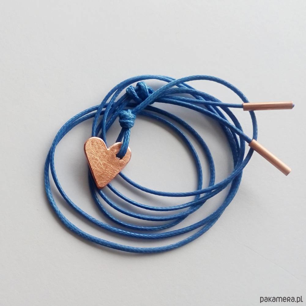 Serduszko bransoletka - uroczy dodatek . Idealna dla kobiet ceniące ładną oraz oryginalna biżuterii. Wisior wykonany jest ze miedź., ozdobny sznurek Miedź - zmatowiona , Długość sznurka - ok. 60cm. Długość zawieszki - ok. 15 mm. Szerokość zawieszki - ok. 15 mm.