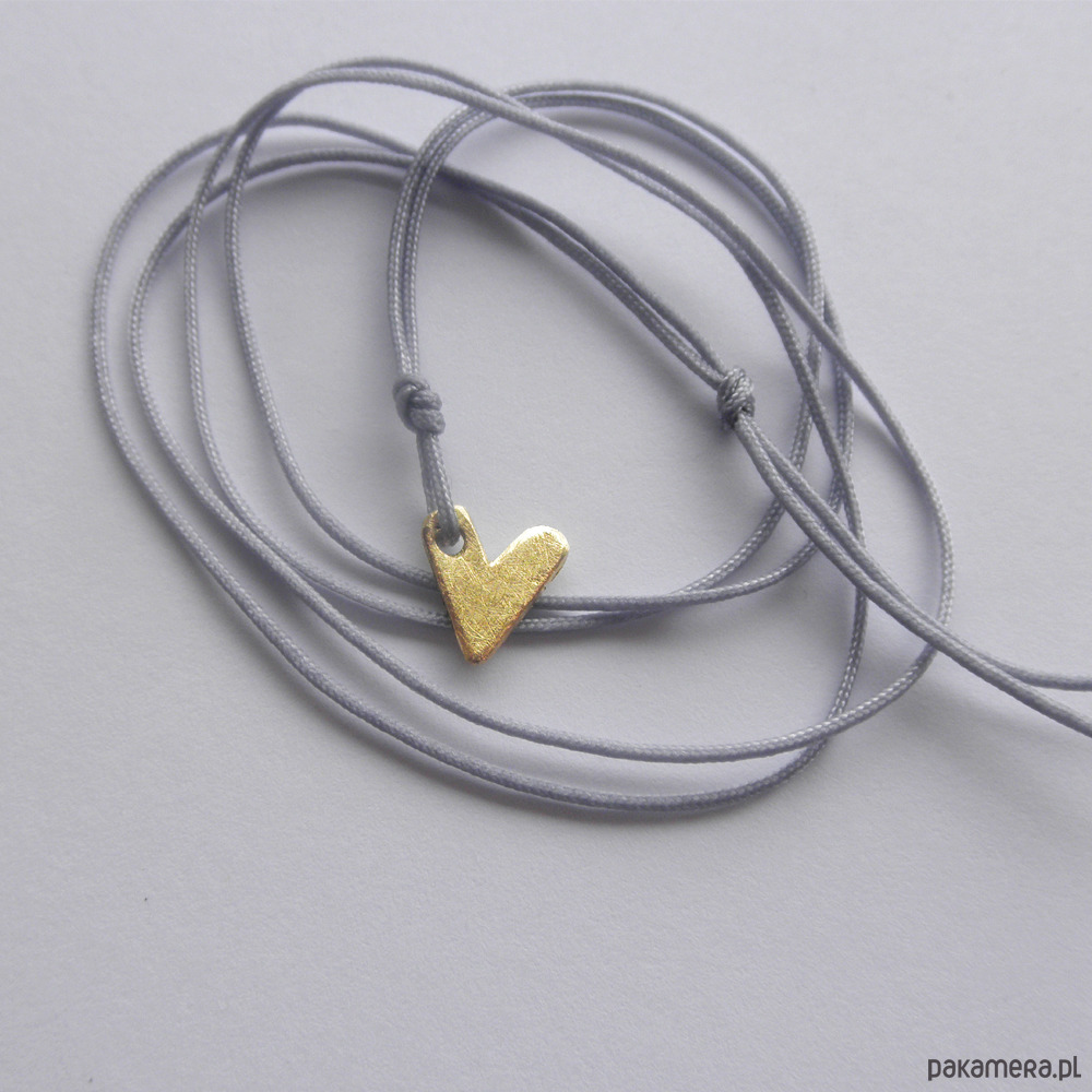 Wisiorek wykonany jest z mosiądz, zmatowione, ozdobny sznurek. Mosiądz - zmatowiony. Długość zawieszki - ok. 1 cm. Szerokość zawieszki - ok. 1 cm.Długość sznurka ok. 60 cm. Istnieje możliwość wykonania wisiorka o innym kolorze sznurka