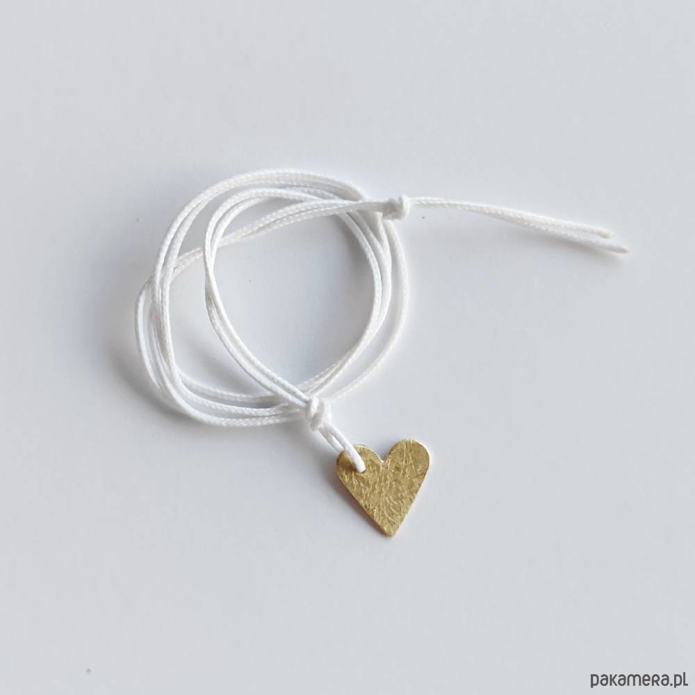 Serduszko bransoletka - uroczy dodatek . Idealna dla kobiet ceniące ładną oraz oryginalna biżuterii. Wisior wykonany jest ze mosiądz, ozdobny sznurek. Mosiądz- zmatowiony. Długość sznurka - ok. 60cm. Wielkość serduszka 1,5 cm/ 1,5 cm.