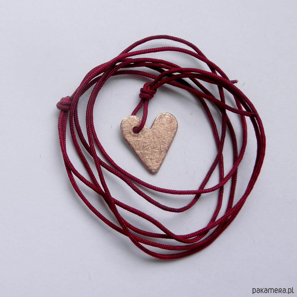 Serduszko wisiorek - uroczy dodatek . Idealna dla kobiet ceniące ładną oraz oryginalna biżuterii. Wisior wykonany jest z: brąz, ozdobny sznurek, brąz - zmatowiona, Długość sznurka - ok. 60cm. Długość zawieszki - ok. 15 mm. Szerokość zawieszki - ok. 15 mm. Waga - ok. 3g