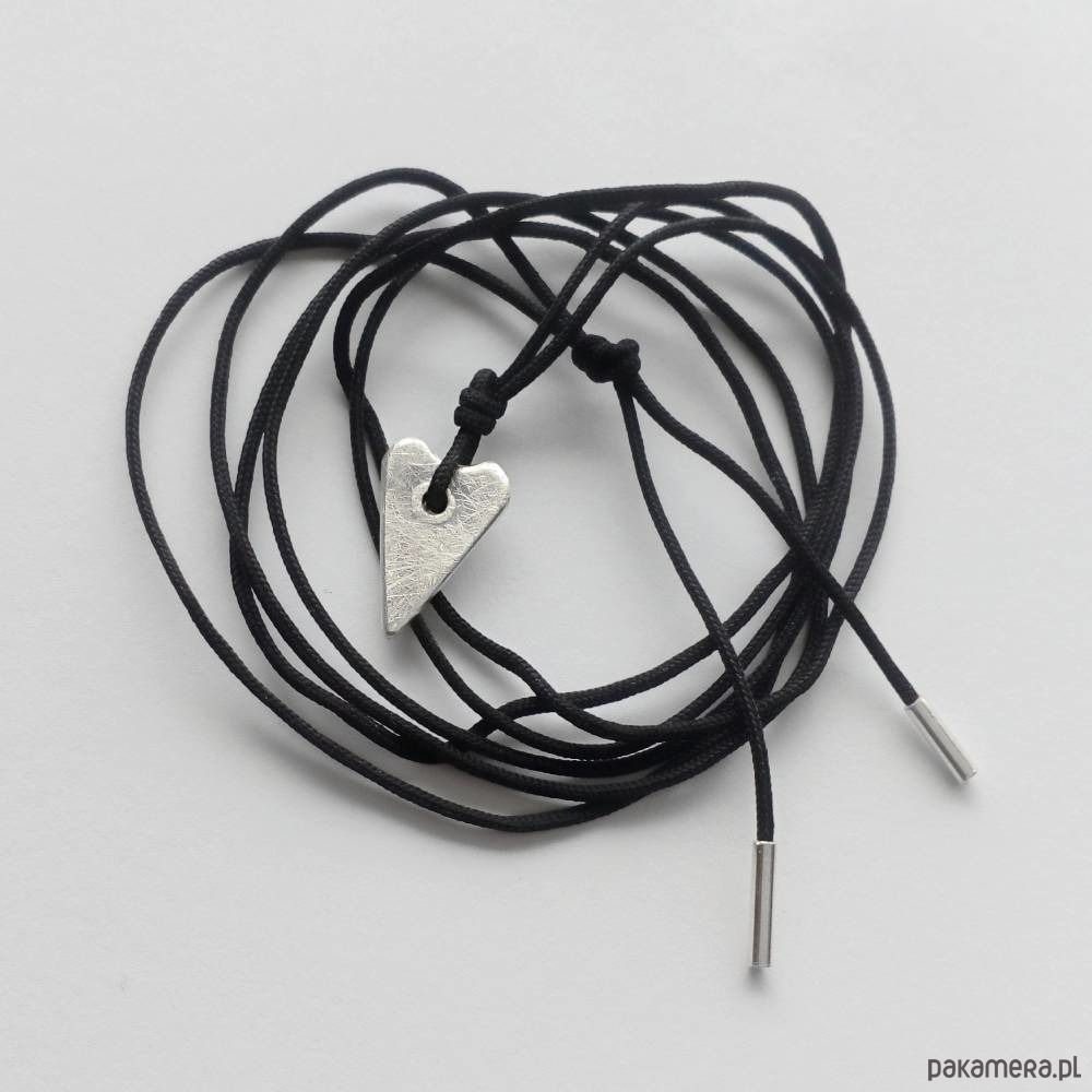 SERDUSZKO wisiorek. Wisiorek wykonany jest z, ze srebra. Srebro - próby 0,925, zmatowione, ozdobny sznurek. Srebro - zmatowione..Długość sznurka ok. 60 cm. Istnieje możliwość wykonania wisiorka o innym kolorze sznurka. Długość zawieszki - ok. 1,4 cm. Szerokość zawieszki - ok. 0,8 cm. Wisiorek jest oryginalny i pasuje do różnych stylizacji.