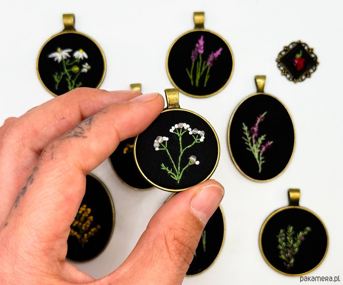 Seria Botanica to ręcznie haftowana biżuteria. Poza wizualizacją najpopularniejszych ziół i roślin jesieni, hafty zostały wzbogacone o naturalne kamienie. Haftowanie tak małych roślinek sprawiło mi ogrom przyjemności, a dobieranie do nich odpowiednich kamieni było wyzwaniem - ale bardzo wdzięcznym i owocnym.