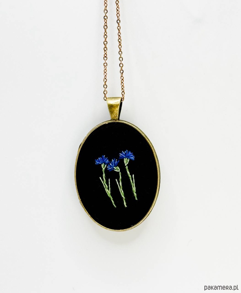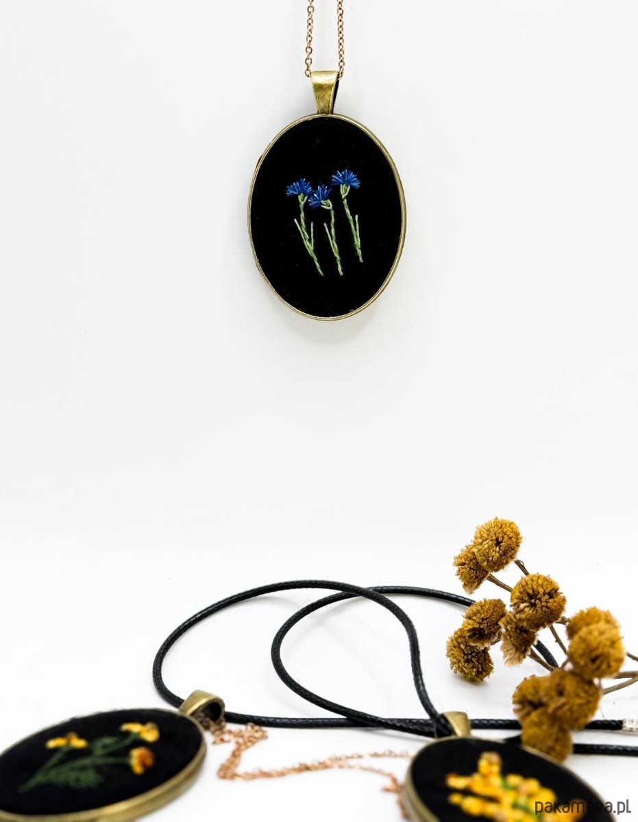 Chaber bławatek symbolizuje niezależność, autentyczność i odwagę w podążaniu własną drogą. Ręcznie haftowany wisiorek łączy w sobie urok polnych kwiatów, ulotność ich koloru i naturalnego piękna. Amulet wzbogacany metalizowanymi nićmi będzie idealnym prezentem dla osób, które chcą żyć w zgodzie ze sobą i nie bać się swojej wyjątkowości.