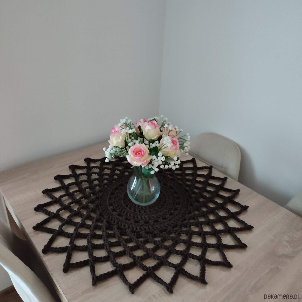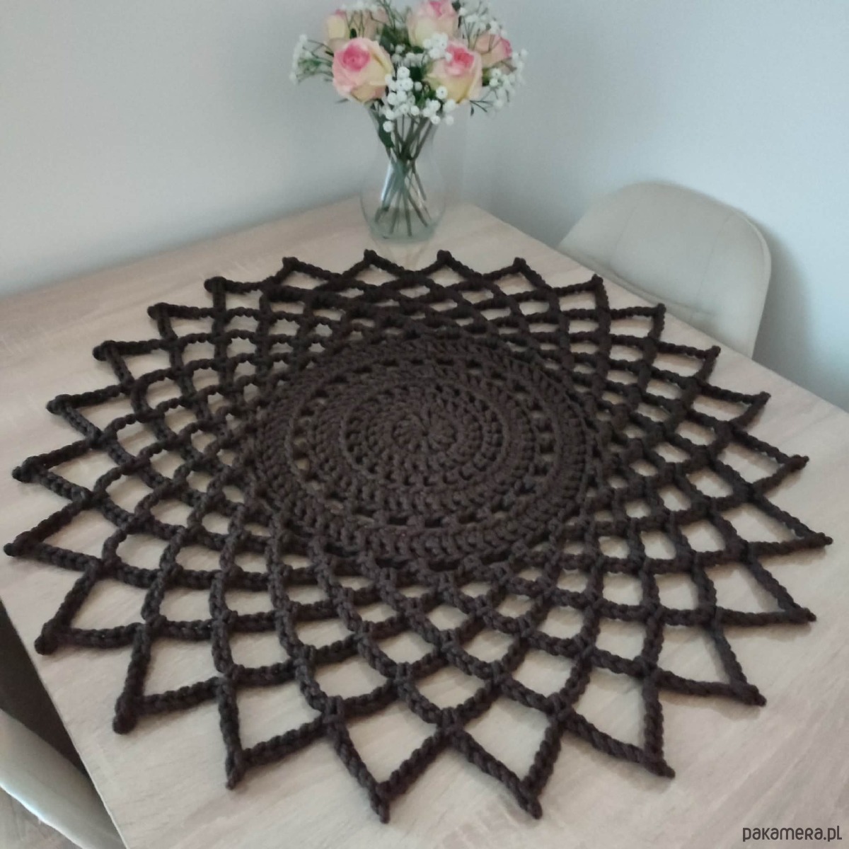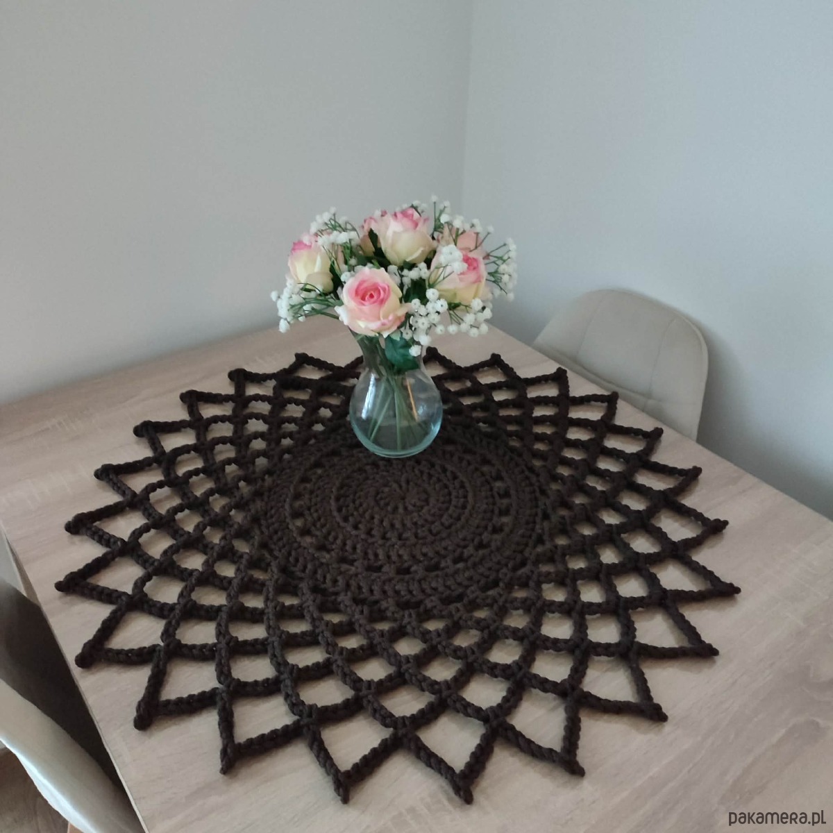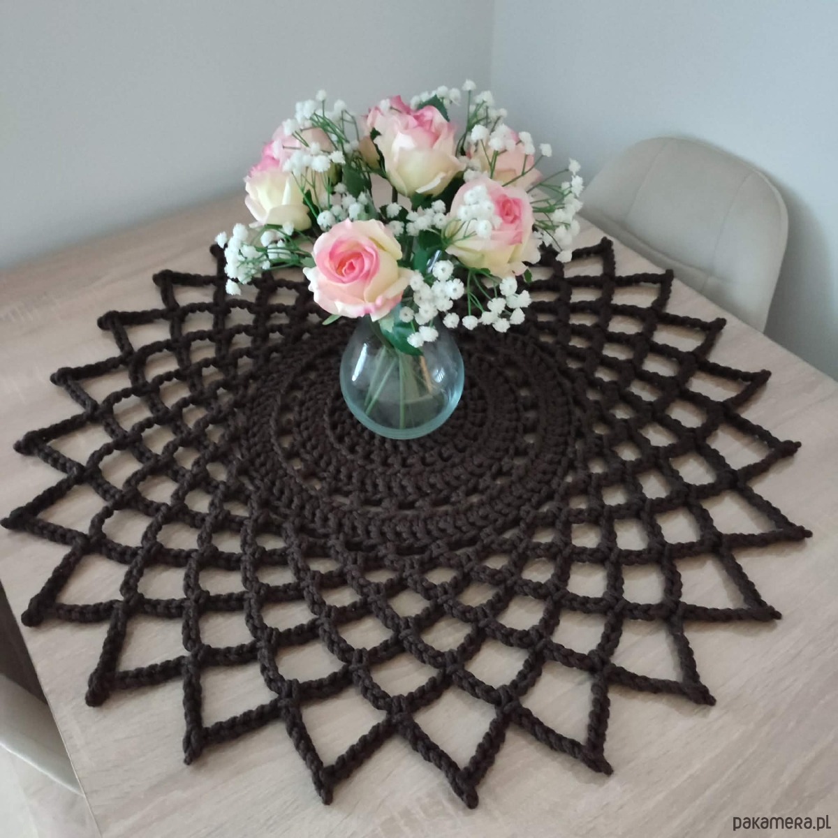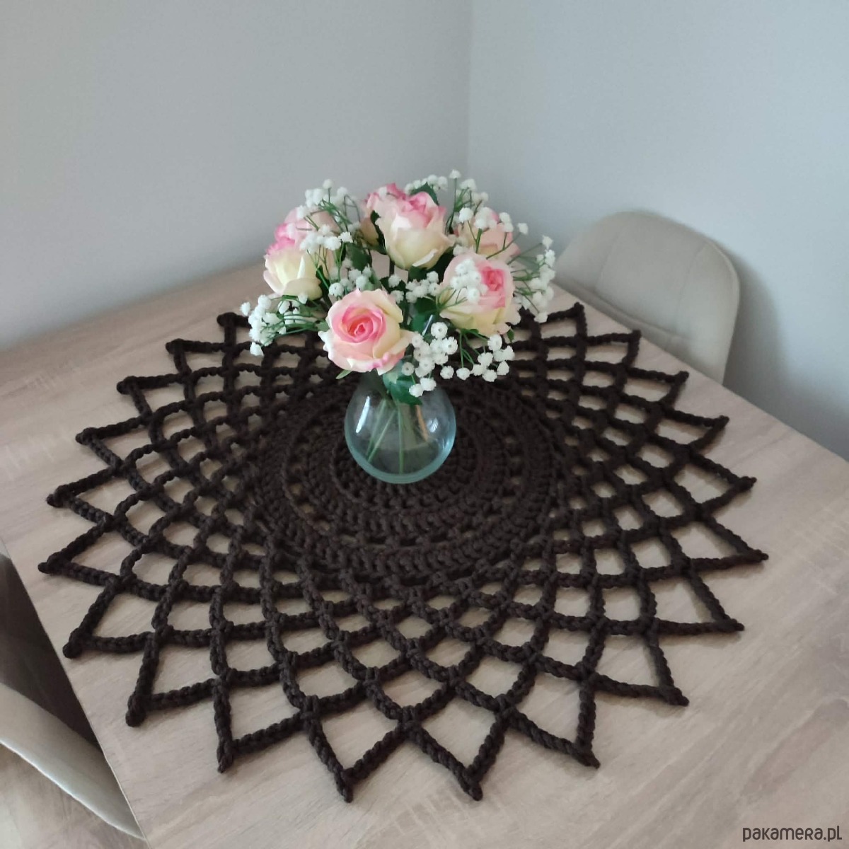 Serweta o średnicy 80cm, wykonana metodą szydełkowania z polskiego sznurka bawełnianego 5mm.